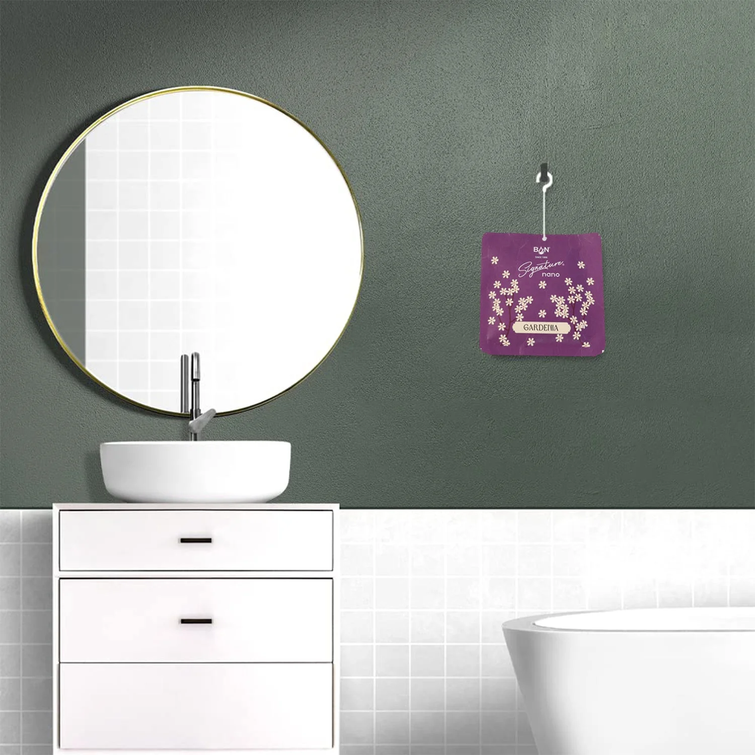 gardenia fragrance hanging air freshener sachet, gardenia floral air freshener, hanging sachet for home fragrance, wardrobe air freshener sachet, car hanging air freshener, long lasting floral aroma sachet, closet deodorizer sachet, drawer freshener pouch, room fragrance sachet, everyday freshness air freshener, home perfume sachet, floral scented hanging pouch