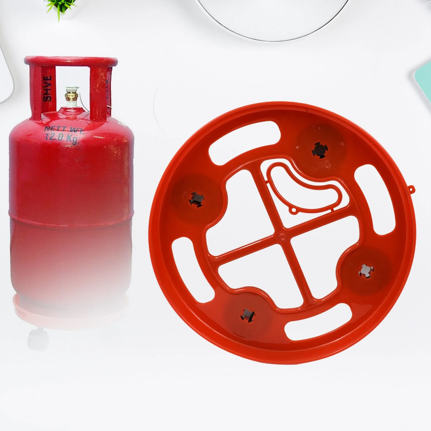 Easy Movement for Your Gas Cylinder the gas cylinder trolley will help you move your heavy gas cylinder from one place to another, with ease. Say goodbye to backaches caused by lifting your heavy cylinder around the kitchen. This gas cylinder trolley does the job for you. Simply place your LPG cylinder on it and push it around. Its body is made of strong and durable virgin plastic that can easily bear the weight of a gas cylinder.