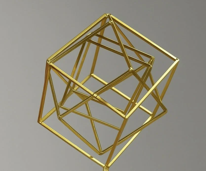 geometric decor, metal showpiece, cube sculpture, tabletop decor, modern home decor, abstract sculpture, desk decor item, office decoration, minimalist decor, decorative statue, shelf decor, artistic showpiece, home styling item