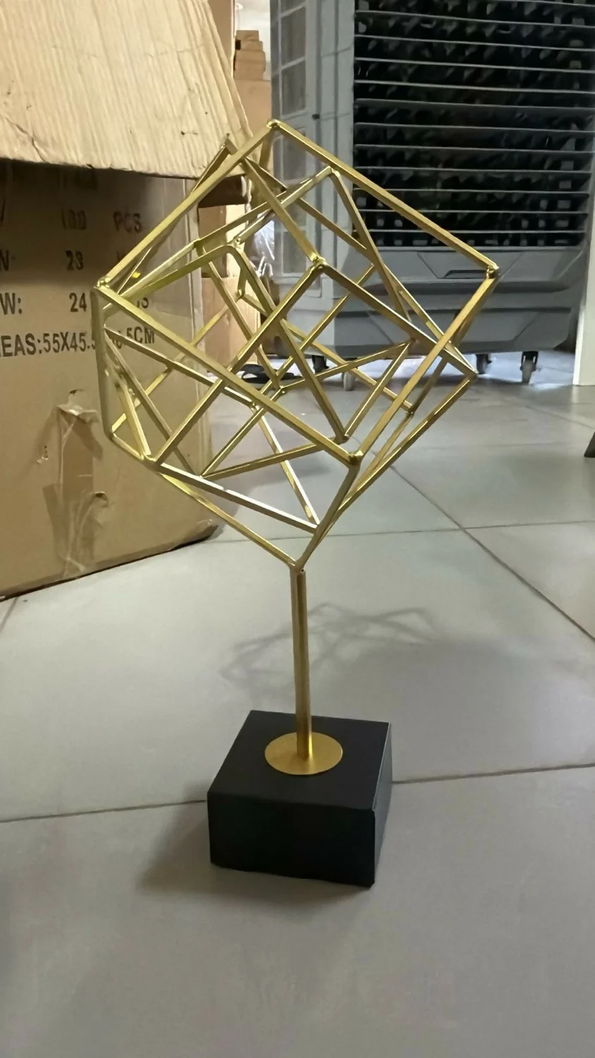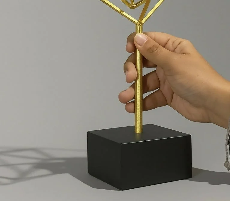 Add a modern artistic touch to your living space with this geometric metal cube sculpture. Designed with an abstract open-frame structure, this decorative showpiece stands elegantly on a sturdy base, making it perfect for tabletops, shelves, and office desks. Its minimalist yet eye-catching design enhances contemporary interiors and serves as a unique conversation piece.
