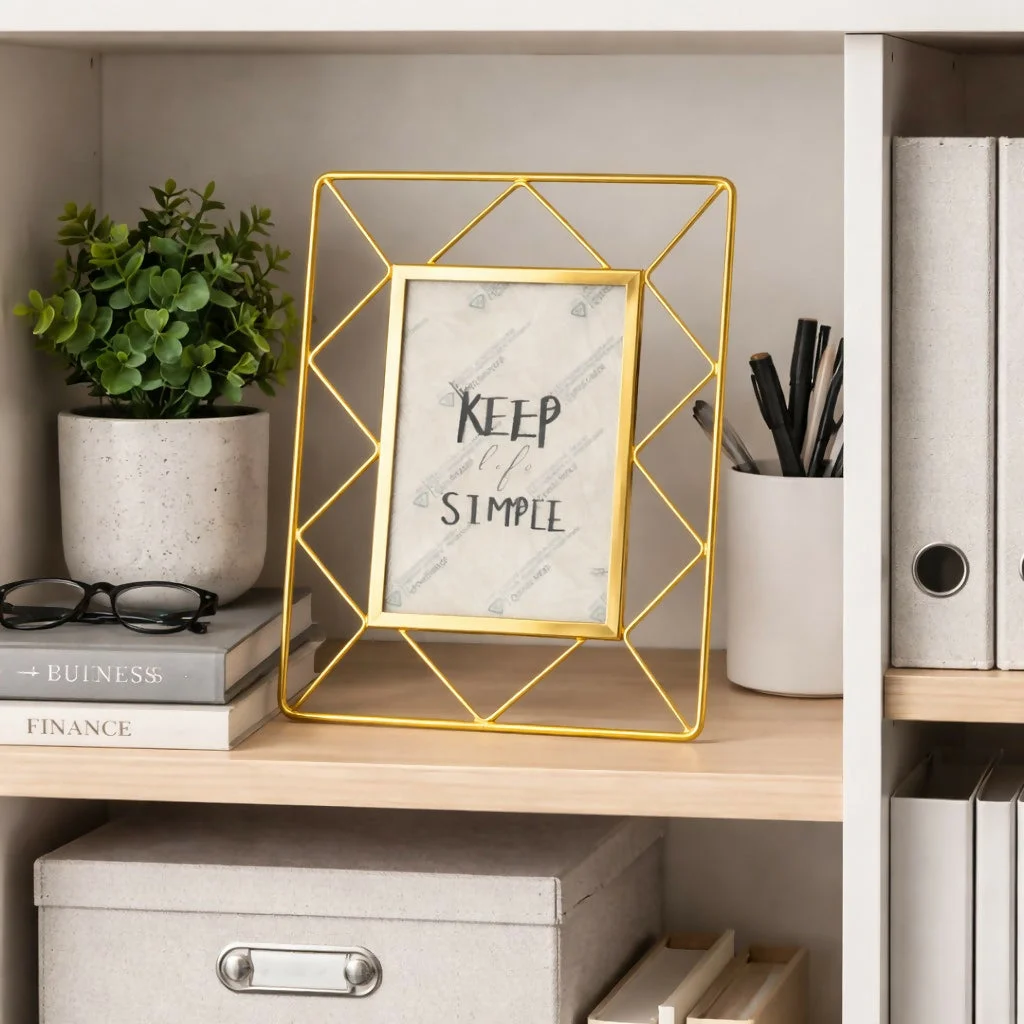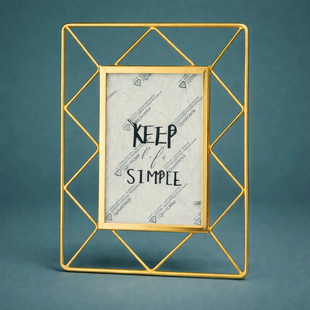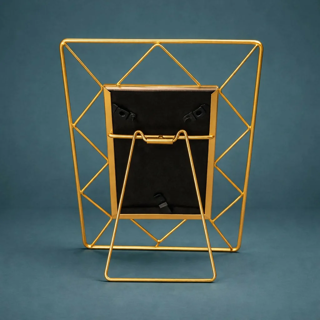 Add a modern and elegant touch to your space with this geometric metal photo frame. Designed with a stylish open-frame structure and a sturdy stand, it beautifully highlights your favorite photos while enhancing your décor. The sleek metal design gives it a contemporary look, making it perfect for desks, shelves, or side tables. Ideal for displaying memories at home or in the office, this frame also makes a thoughtful and stylish gift.