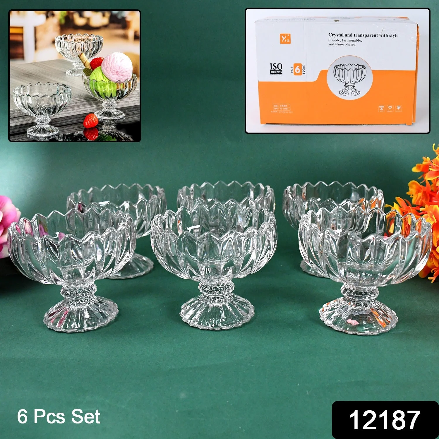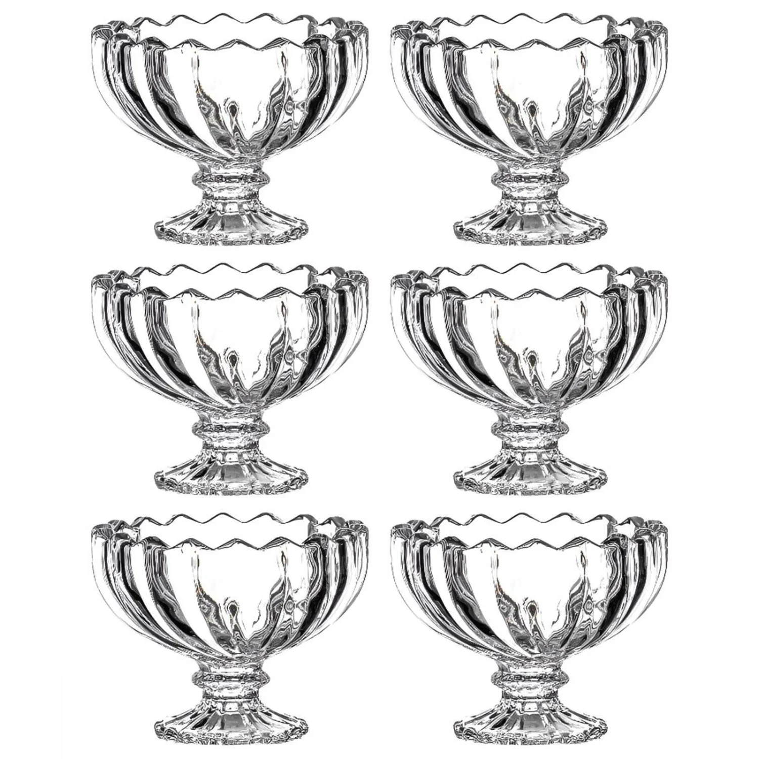 - EXCEPTIONAL EUROPEAN QUALITY (SET OF 6): ice cream bow set are made with high quality toughened European clear and smooth glass. These excellent dessert cups set are perfect for serving ice cream, trifle, parfait, sundae, pudding, frozen yogurt, gelato, fruit parfaits, condiments, candy, nuts, sweets, Turkish delights and other healthy snacks.