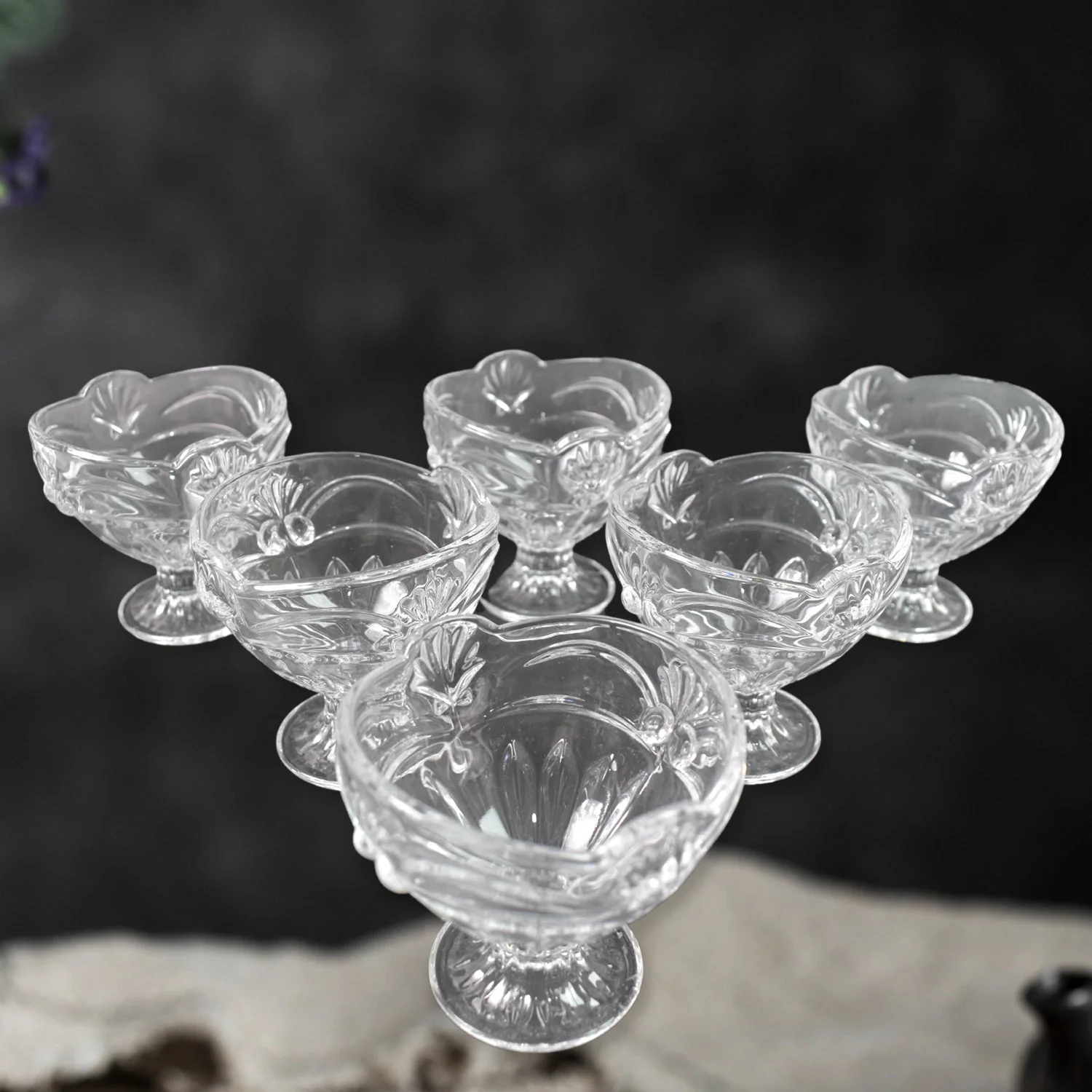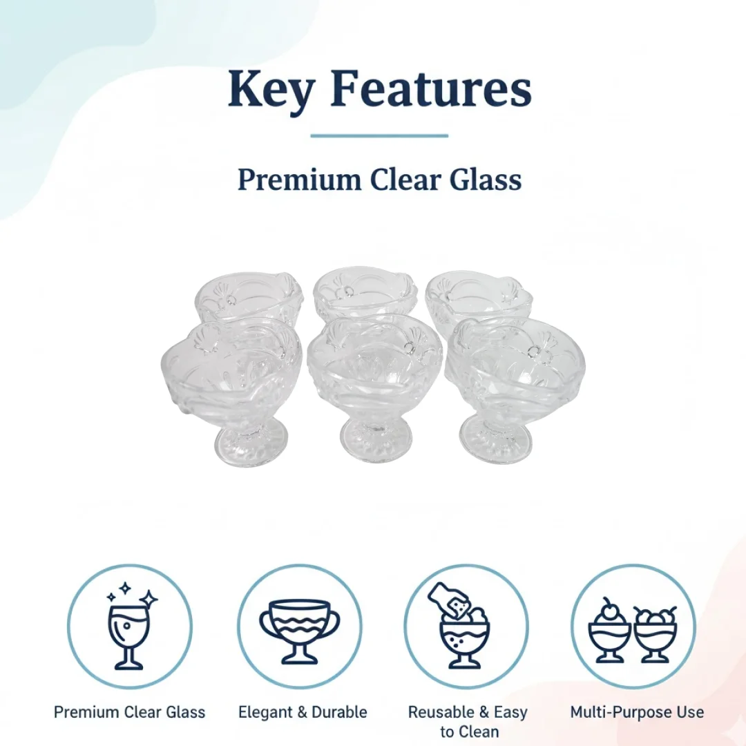 Glass Ice-Cream Cup Set, Home & Kitchen Serving or Dessert Cup for Sundae, Sweets, Snacks, Fruit, Pudding, Nuts or Dip, Serving Bowls, Pure Glass (6 Pcs Set)