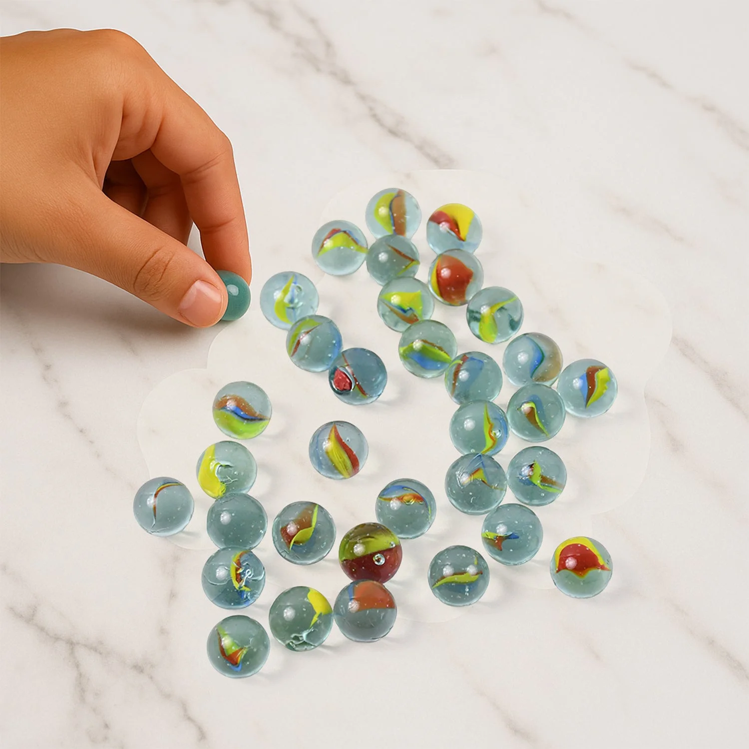 This Approx 35 Glass Marbles brings back the joy of traditional Indian play with colorful, transparent marbles also known as kanchas or golis. Each marble is crafted from crystal-clear glass with colored swirls inside, making them perfect for nostalgic games, creative crafts, or decorative displays.