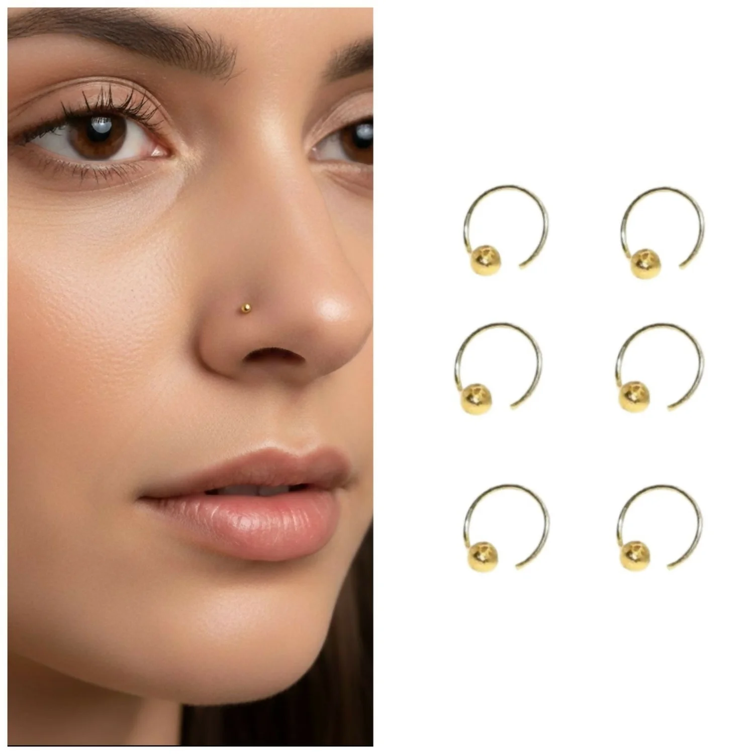 Elevate your everyday look with this minimalist 6-piece gold ball nose stud set. Designed for those who appreciate subtle elegance, these dainty nose rings offer a seamless blend of comfort and style. The classic ball-end design provides a polished, timeless aesthetic that complements any outfit, from casual wear to formal attire.