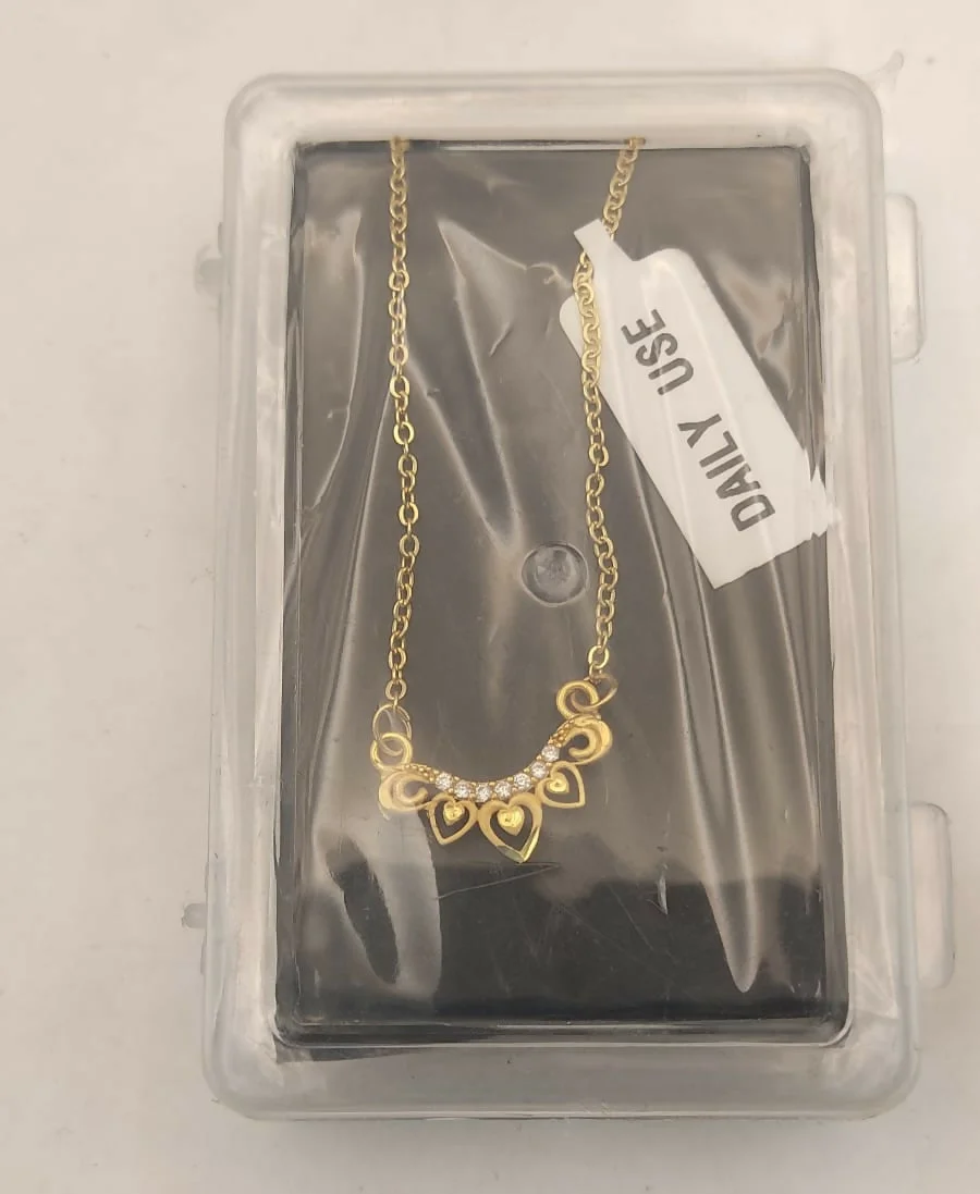 Celebrate love and elegance with this charming gold-plated necklace. The pendant features a beautiful, stylized design reminiscent of a miniature crown or a garland of hearts, making it a perfect symbol of affection and grace. This piece is ideal for gifting or adding a subtle touch of glamour to your daily ensemble.