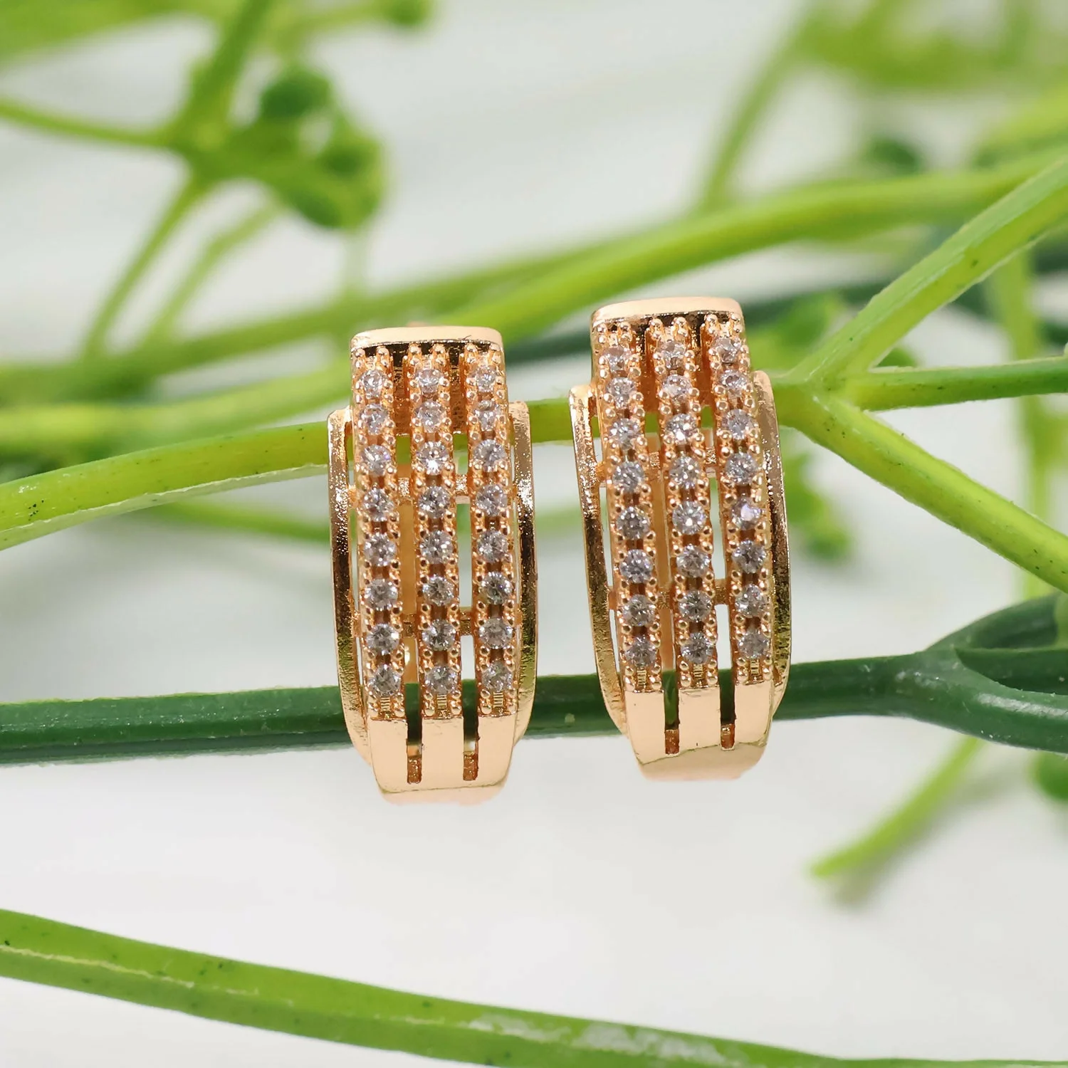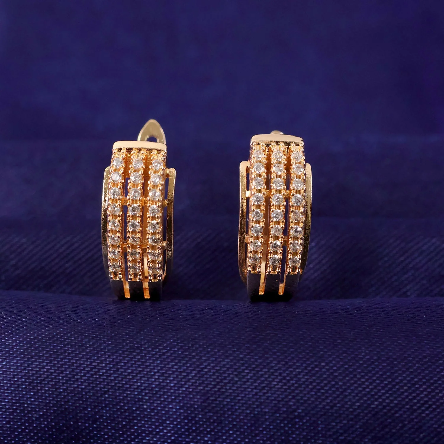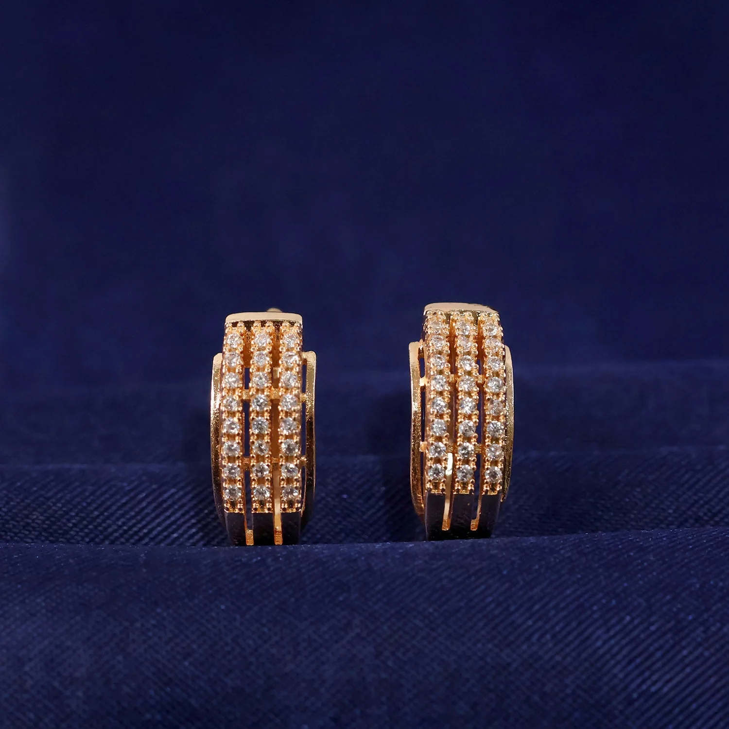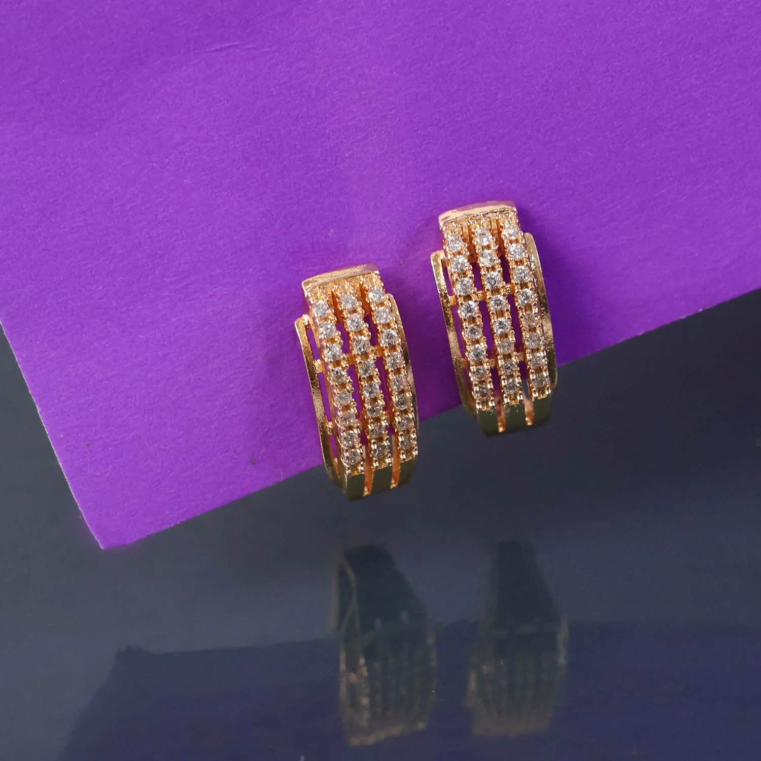 Enhance your style with these elegant gold finish crystal hoop earrings designed for a refined and modern look. Featuring multiple rows of sparkling stones, these hoops add just the right amount of shine without looking heavy. Their sleek design makes them suitable for daily wear, office outfits, and special occasions alike. The secure clasp ensures comfortable wear throughout the day. A versatile jewellery piece that effortlessly complements both western and ethnic looks.