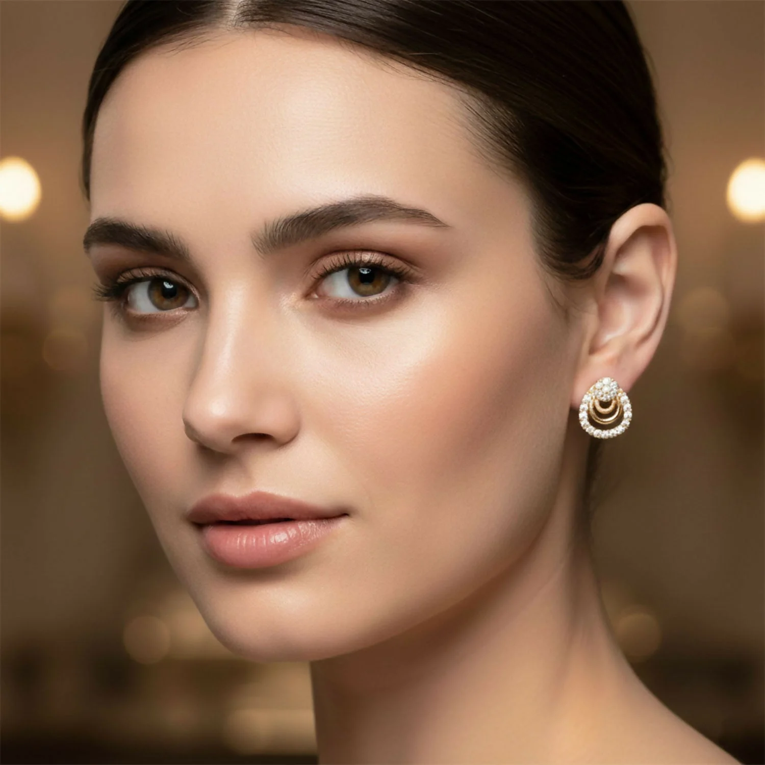 Elevate your jewellery collection with these elegant teardrop crystal stud earrings crafted for a graceful and modern look. Designed with a sparkling crystal outline and layered inner detailing, these earrings offer a unique blend of sophistication and charm. The compact stud style makes them comfortable for all-day wear while still adding a touch of glamour. Perfect for parties, festive occasions, and evening outings, they pair beautifully with both ethnic and western outfits. A stylish choice for gifting or personal use.