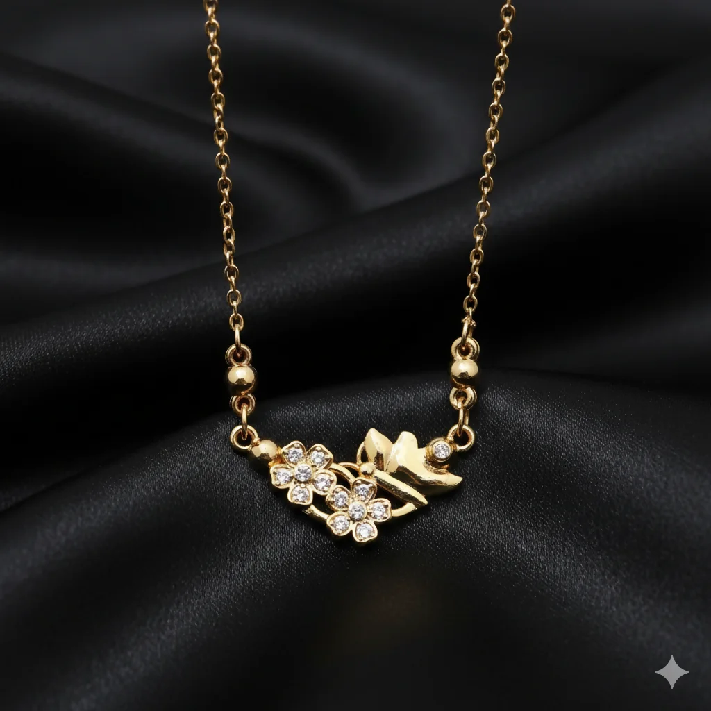 Be the first to review Gold Flower & Butterfly Necklace AD Floral Pendant For women and girls!