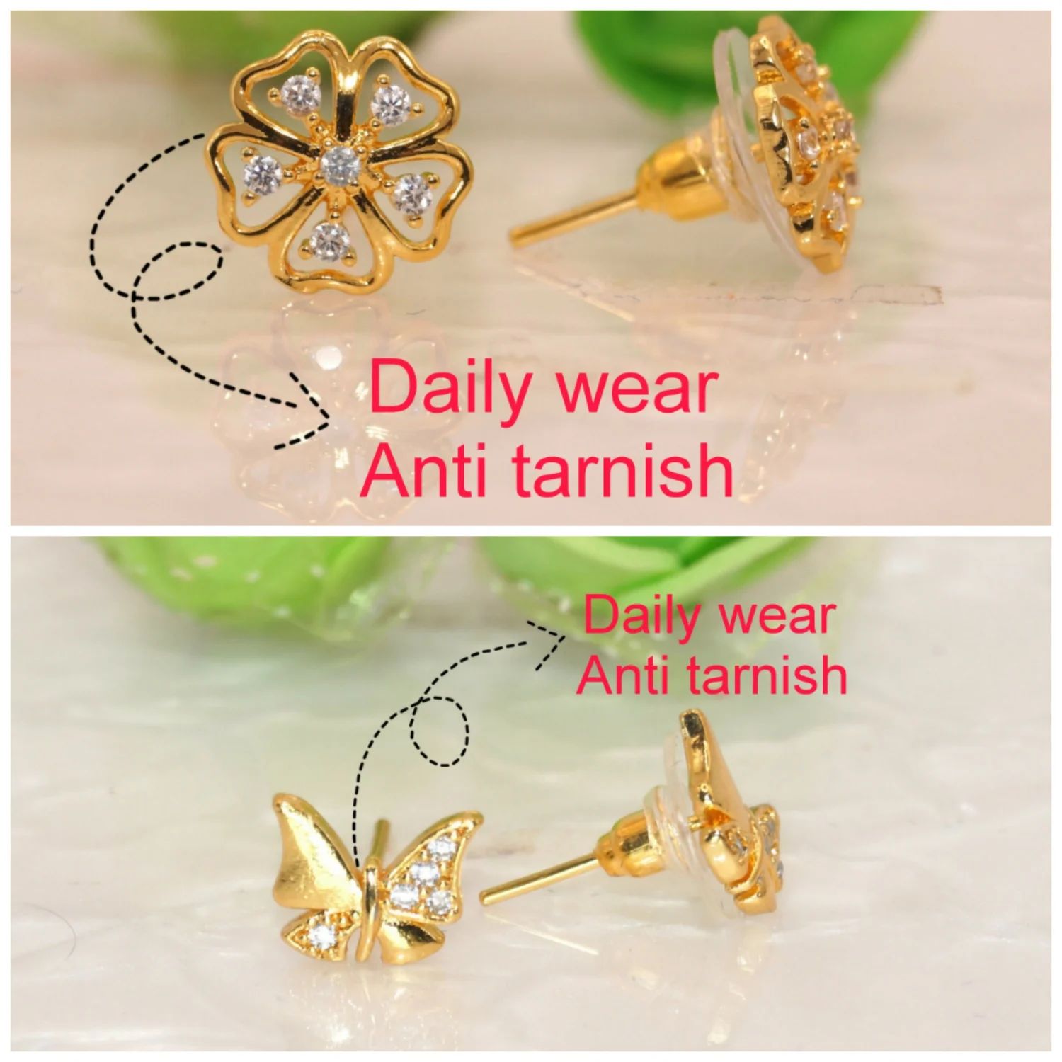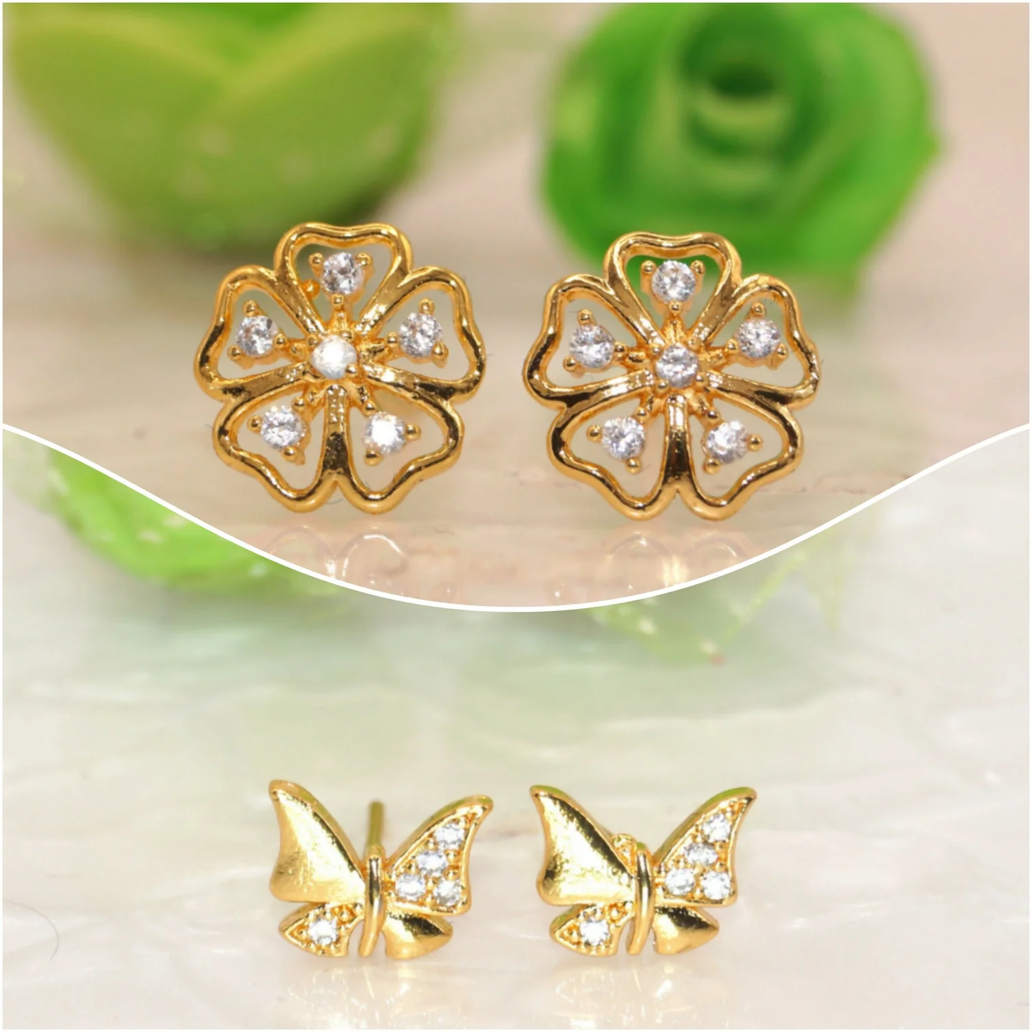Design Variety: Choose between the dainty flower stud with a center cluster and soft colored accents, or the chic butterfly stud adorned with sparkling cubic zirconia stones on its wings.