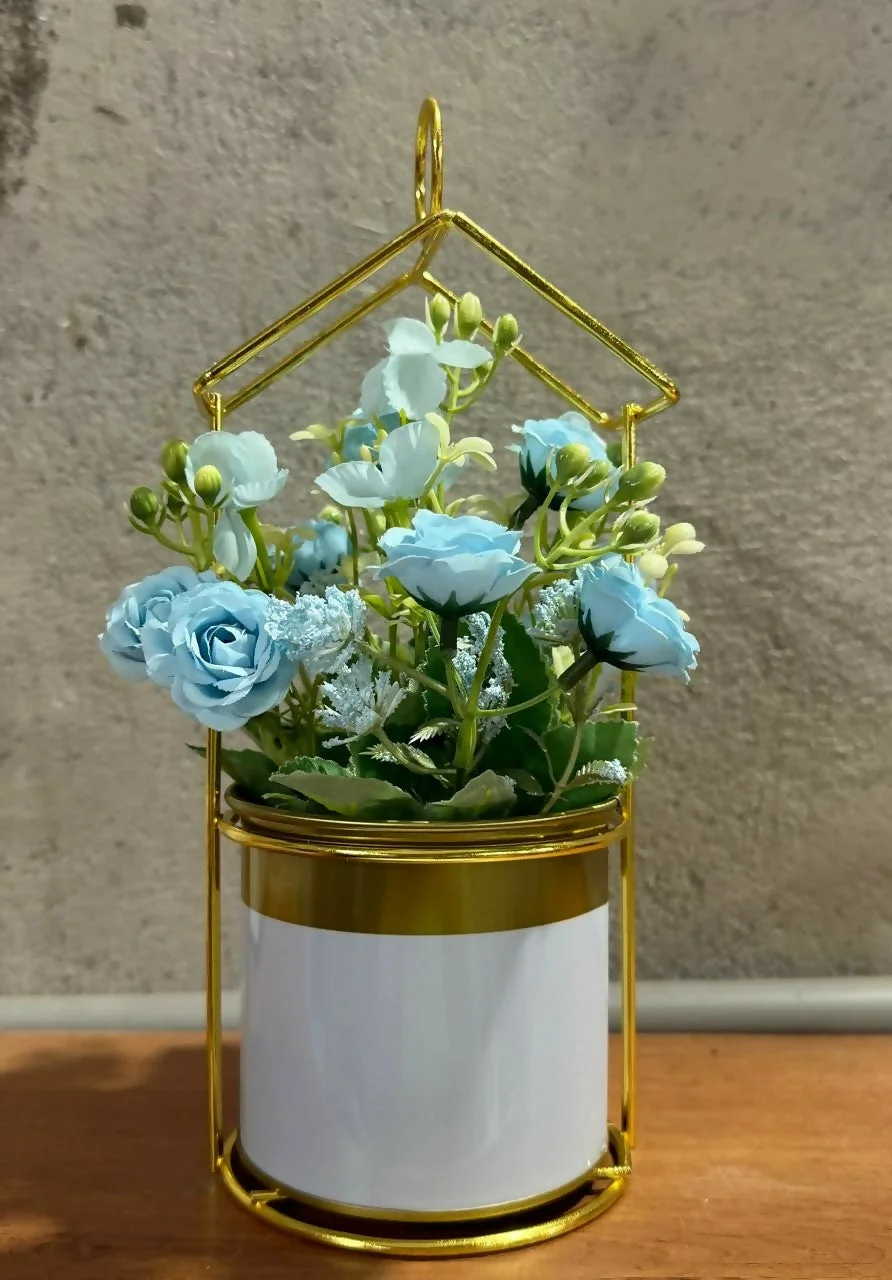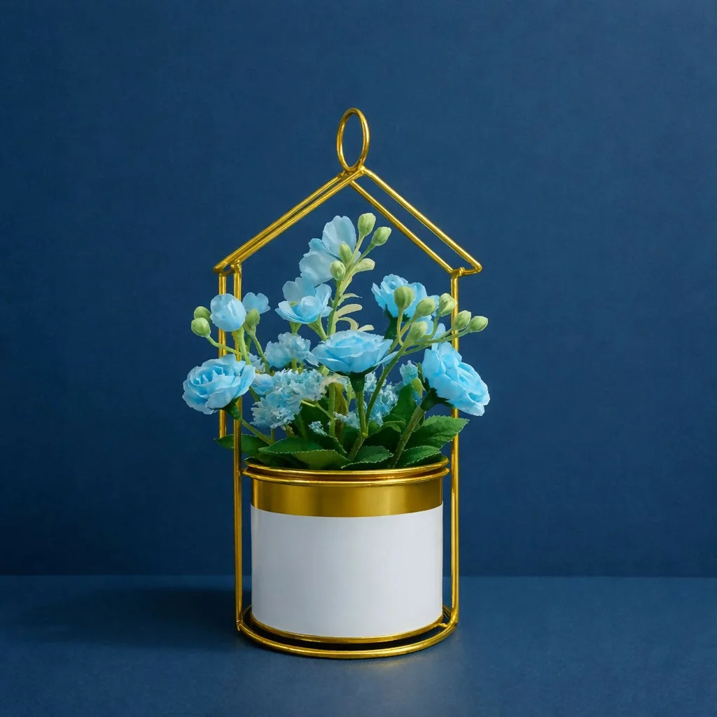 gold planter, house frame plant holder, tabletop flower pot, decorative metal planter, indoor plant decor, artificial flower holder, desk plant decor, modern home decor planter, office table decor, gift planter pot, small decorative pot, stylish plant stand