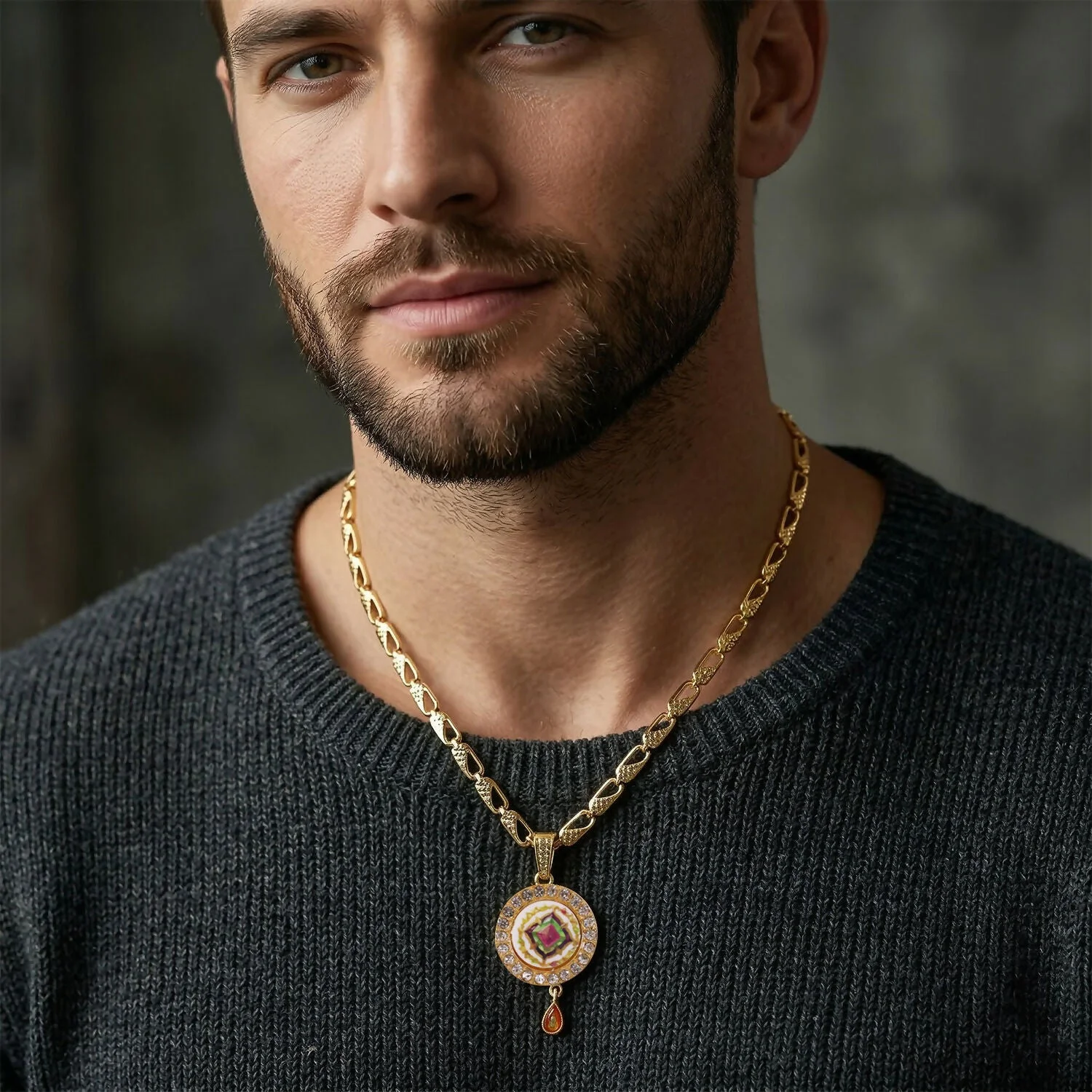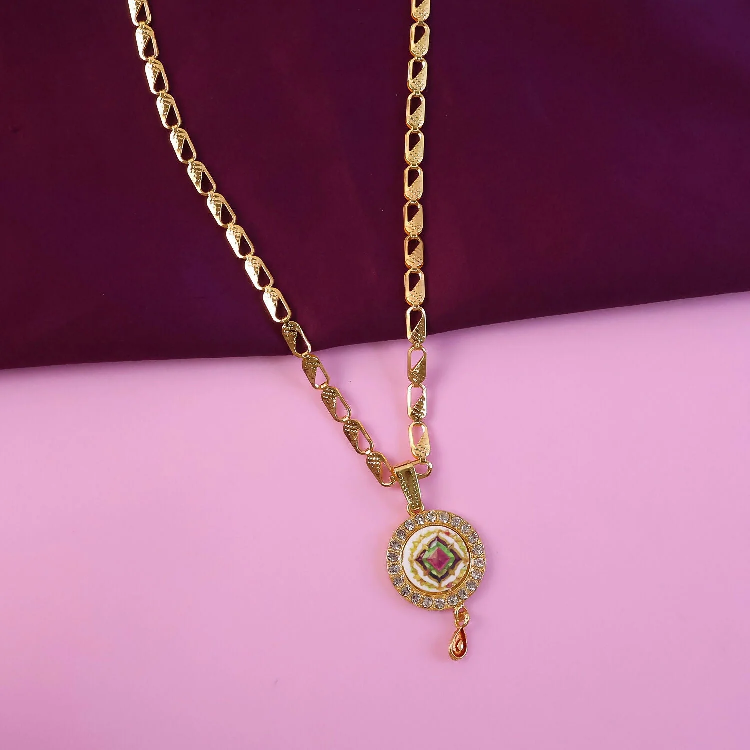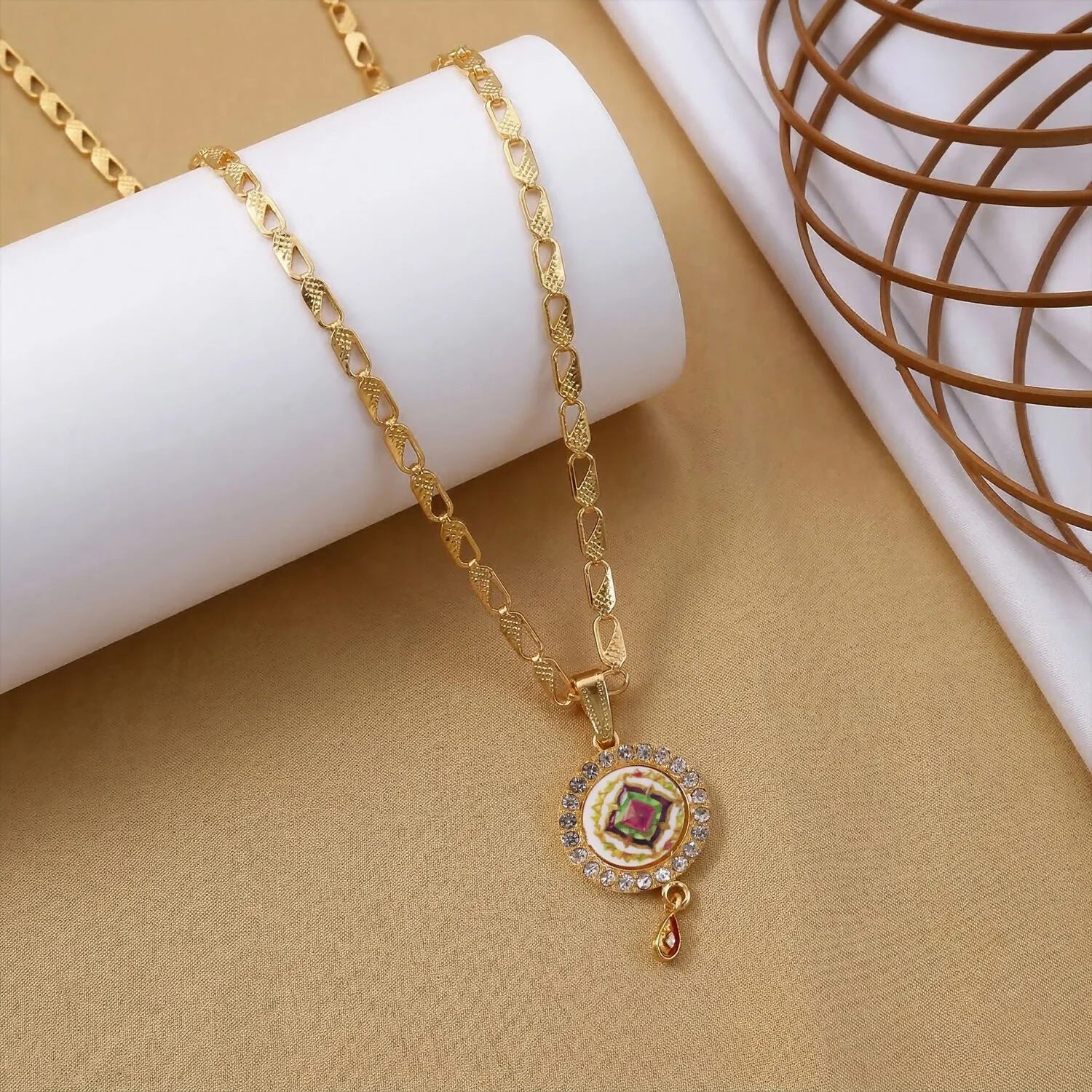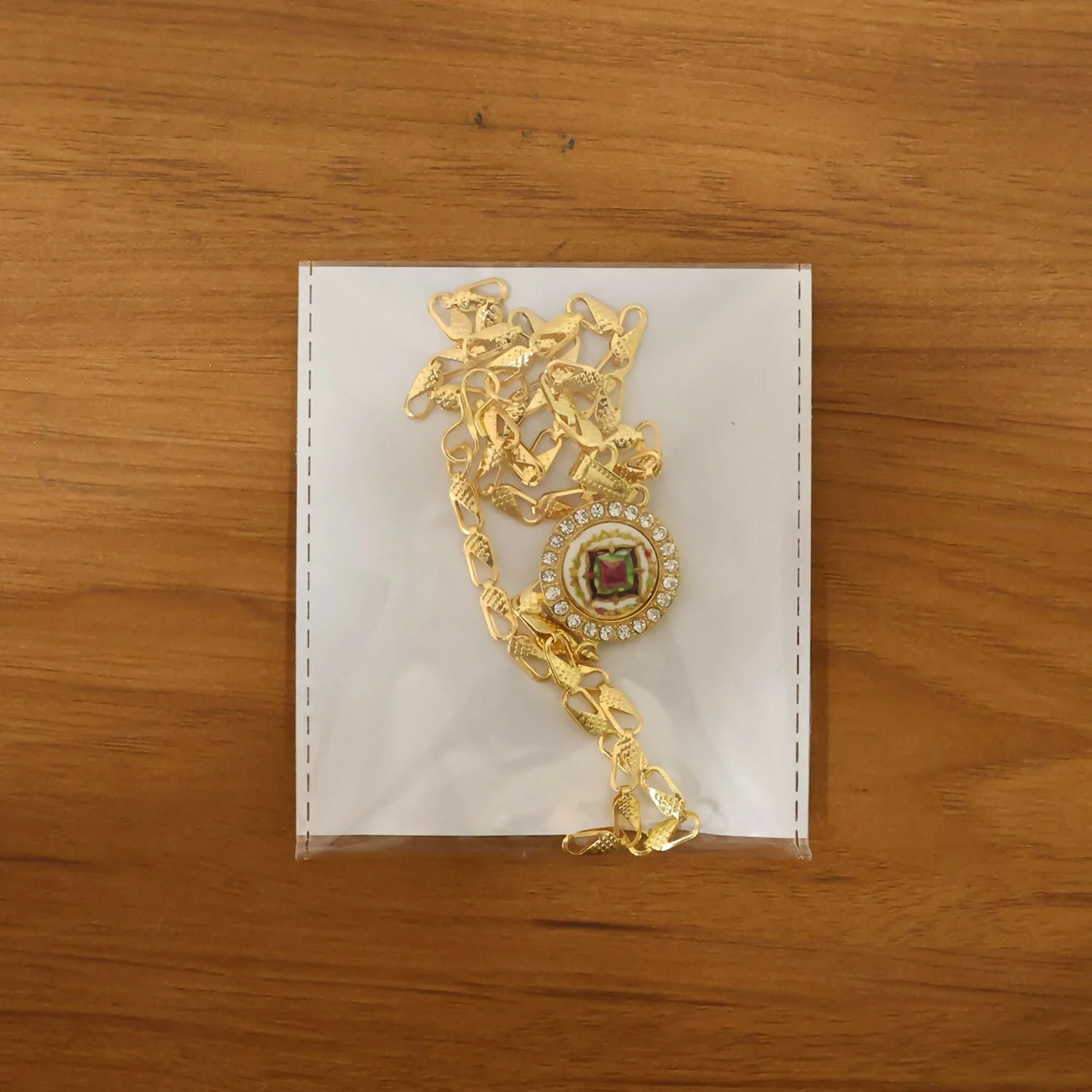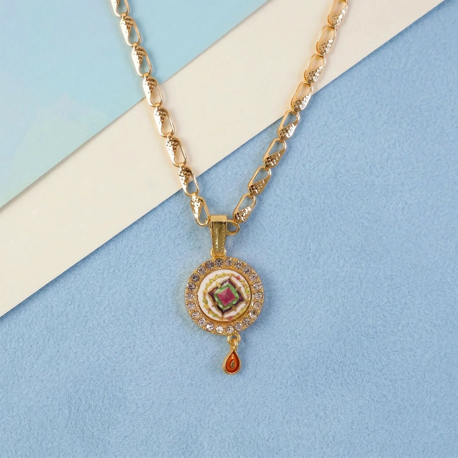 Be the first to review Gold Pendant Necklace with Colorful Mandala & Stone Border!