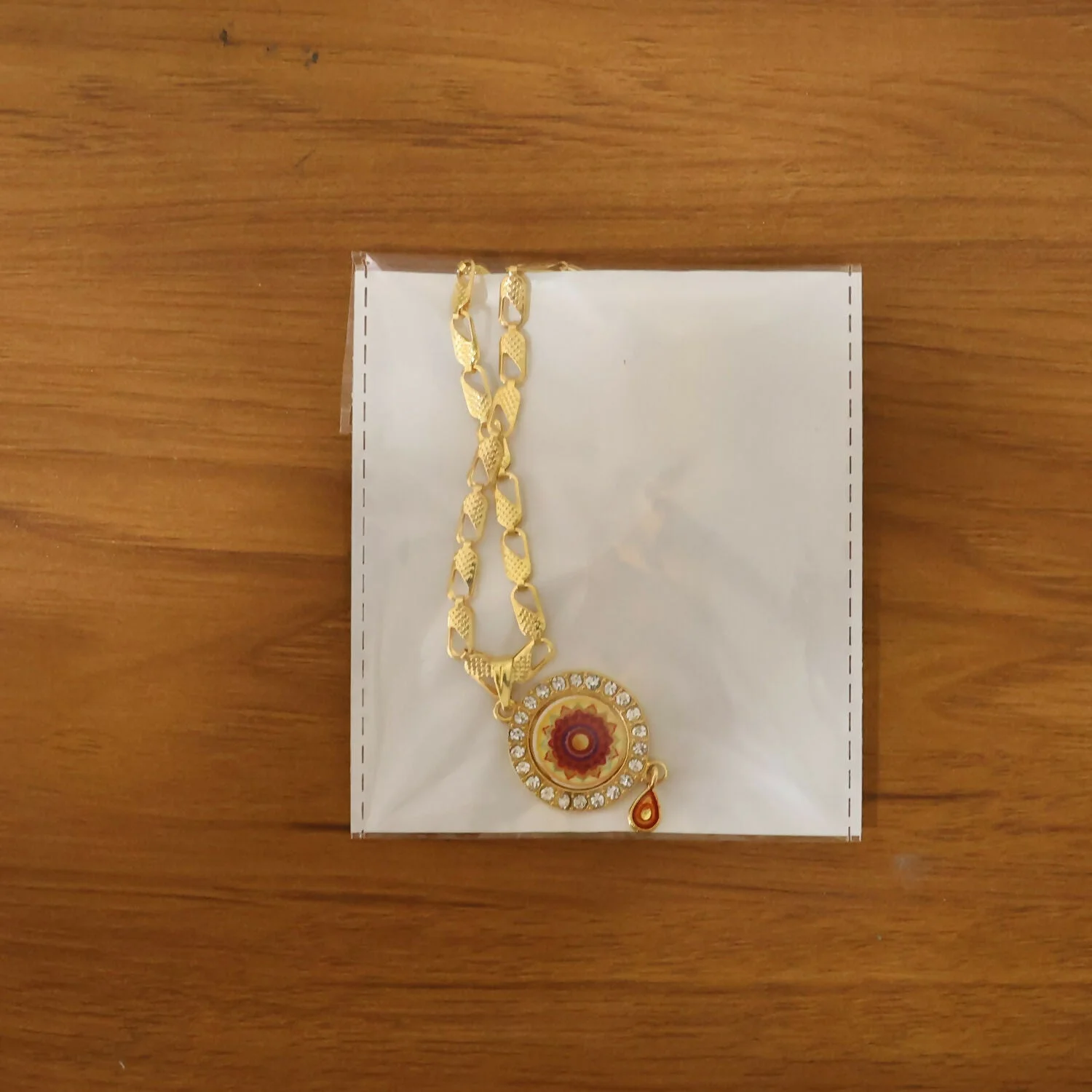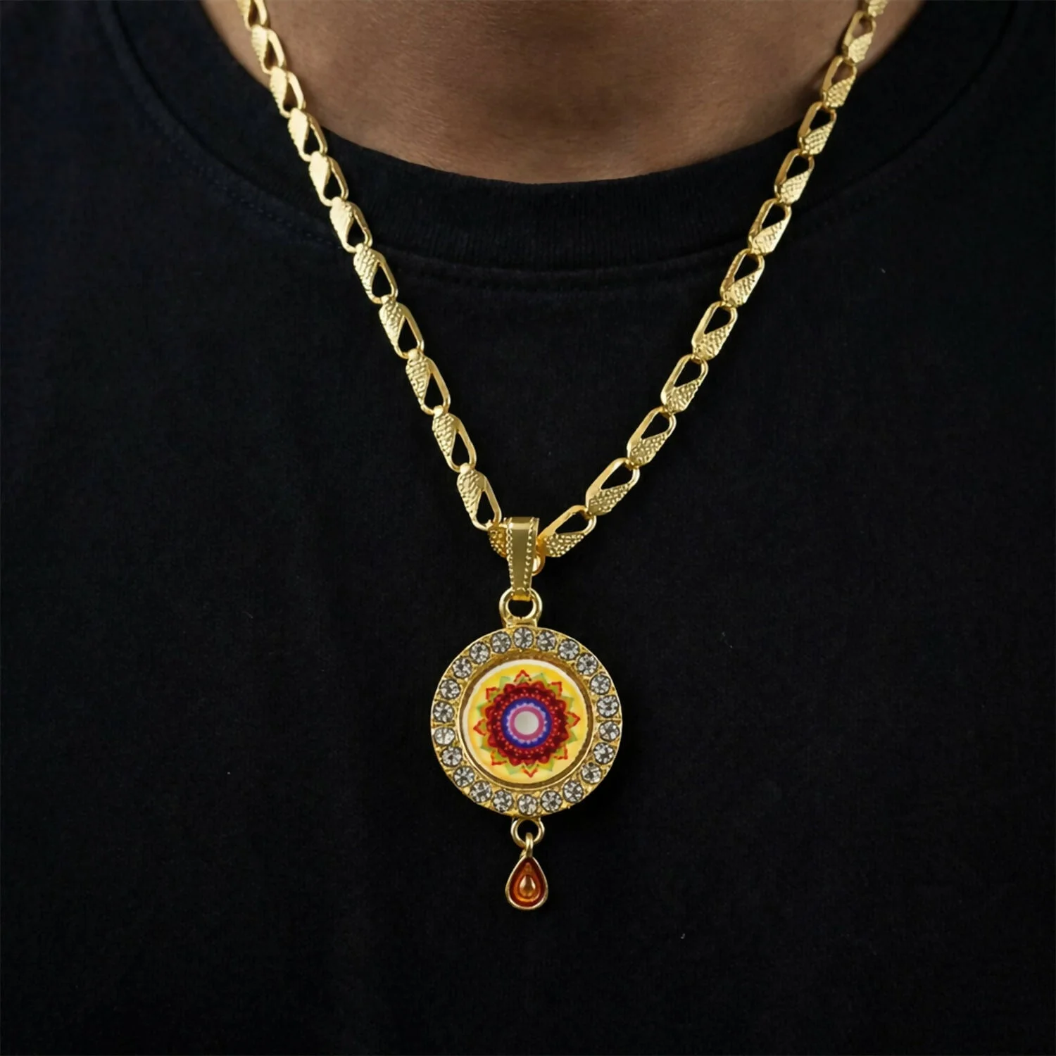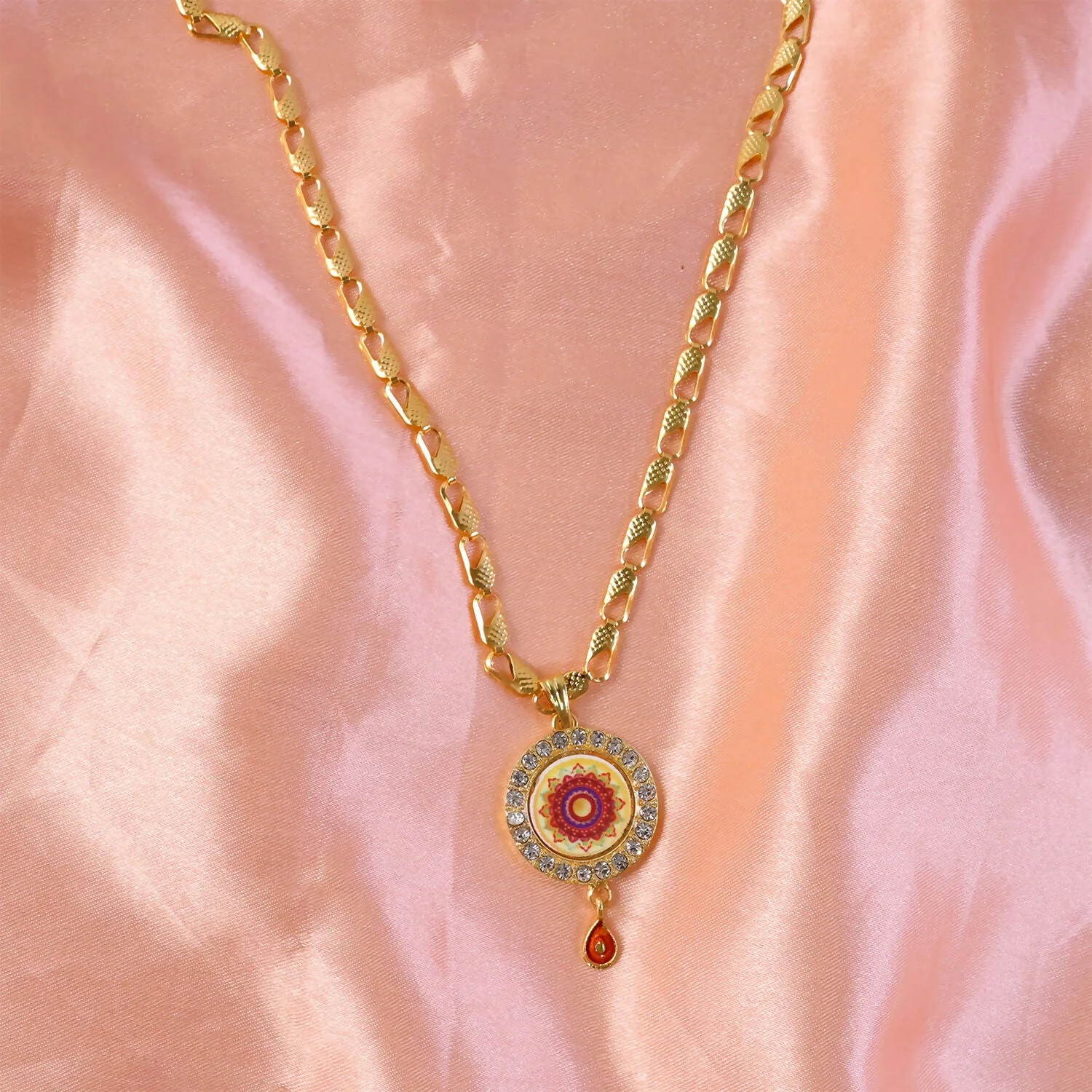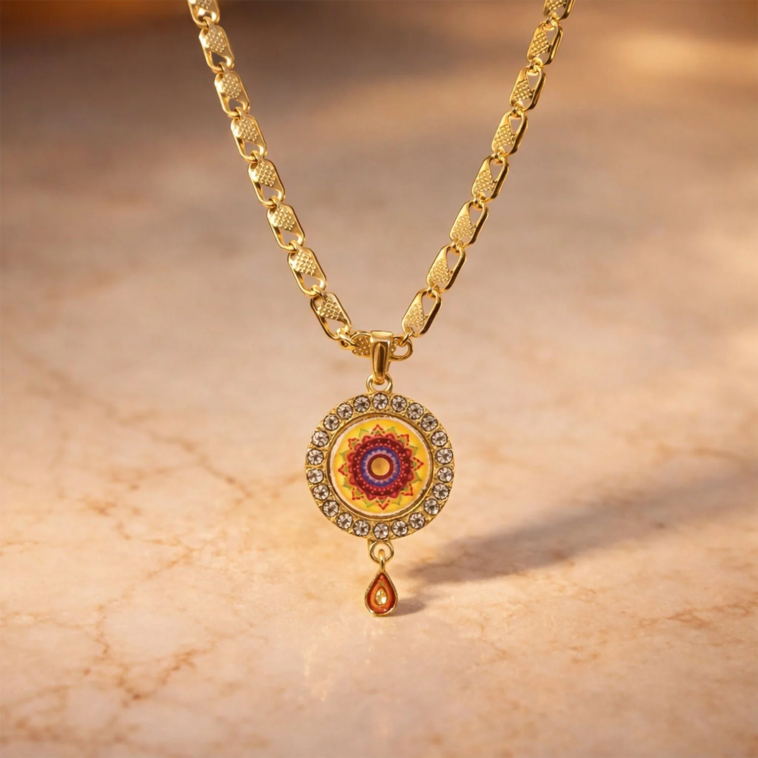 Be the first to review Gold Pendant Necklace with Mandala Design & Stone Detailing!