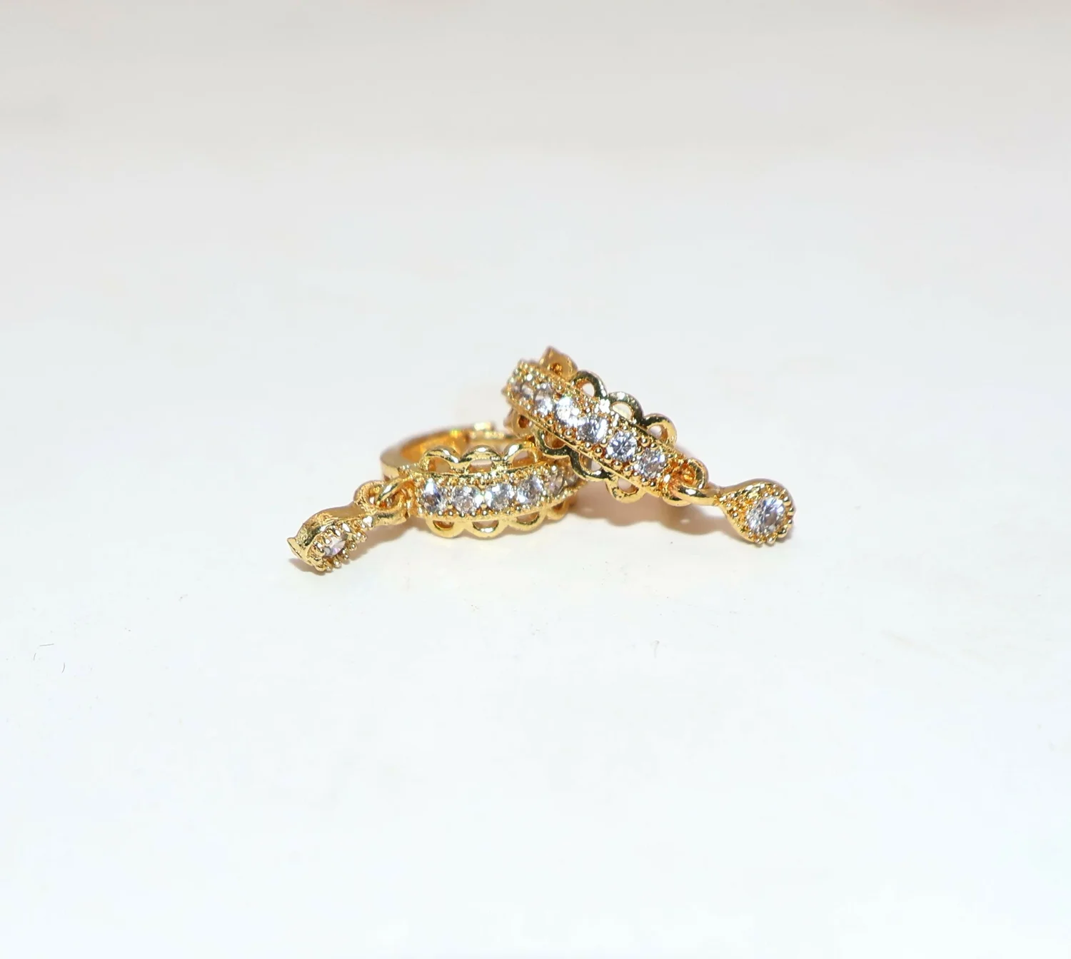 Design: The main hoop is intricately set with a continuous row of brilliant Cubic Zirconia (CZ) stones, offering maximum sparkle.