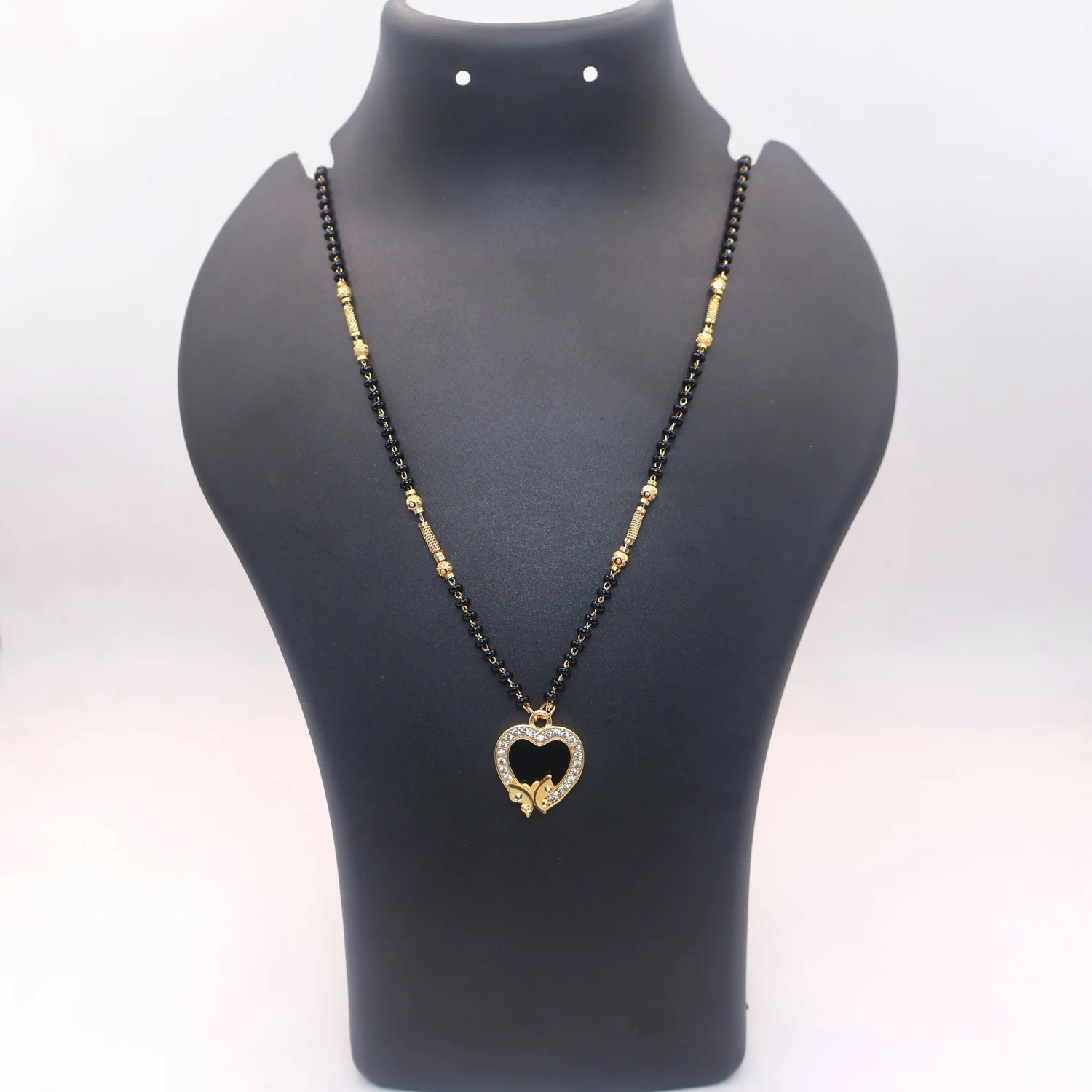 Be the first to review Gold-Plated AD Black Enamel Heart & Butterfly Mangal sutra For women!