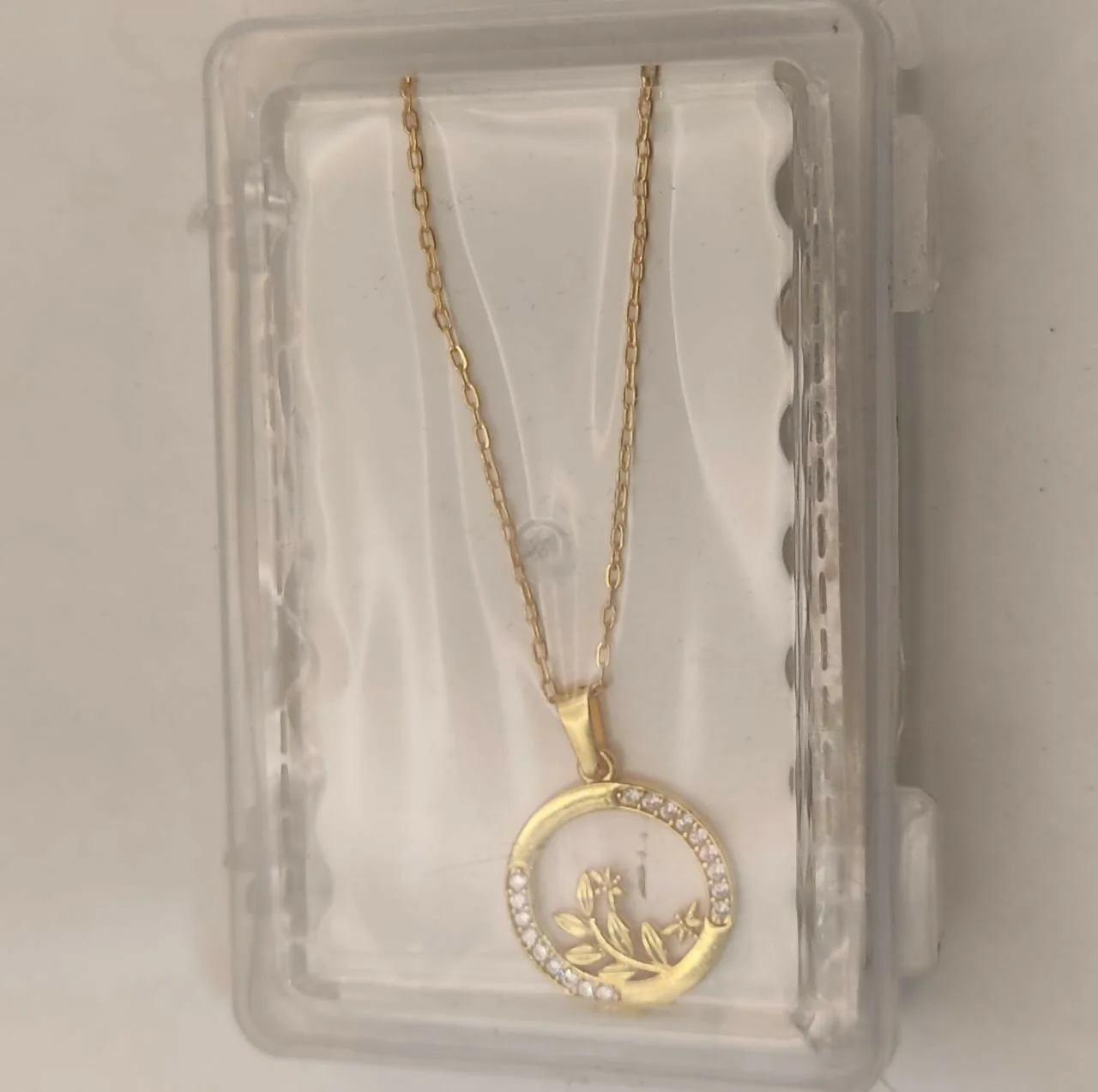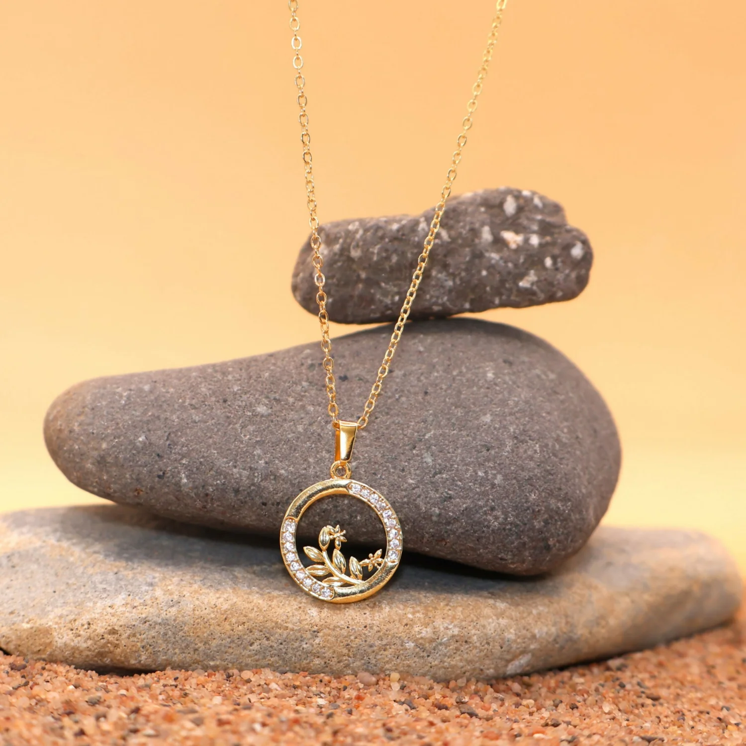 Embrace nature-inspired elegance with this beautiful circular pendant necklace. Featuring a delicate botanical motif framed by a sparkling CZ halo, this piece is a perfect blend of modern sophistication and whimsical charm.