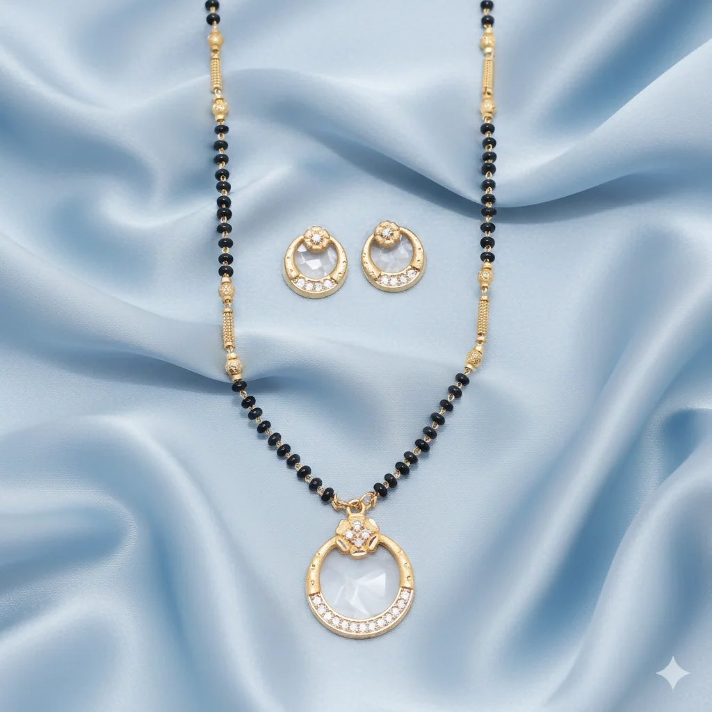 Be the first to review Gold-Plated AD Circular Crystal Mangalsutra & Earring Set for women!