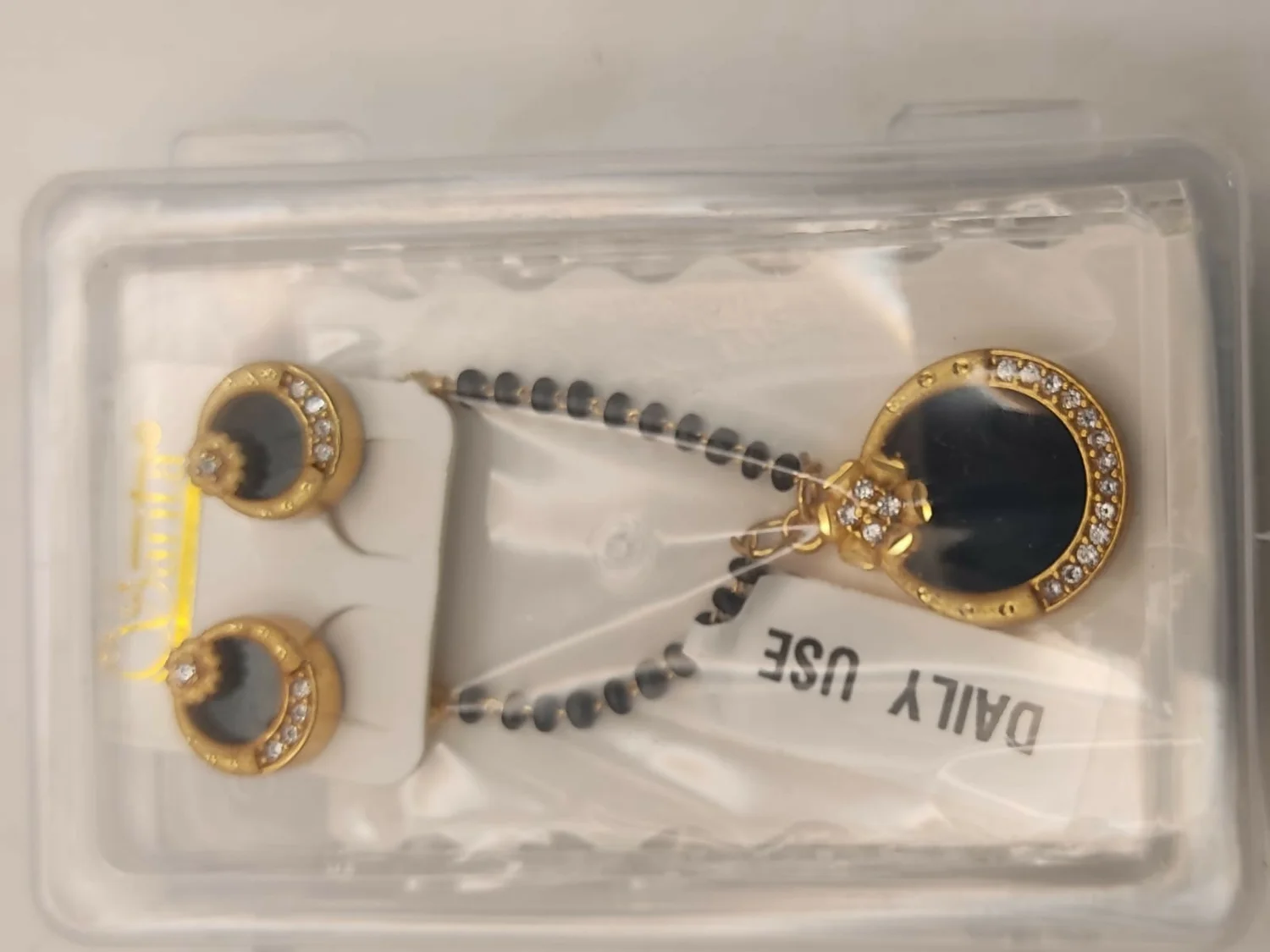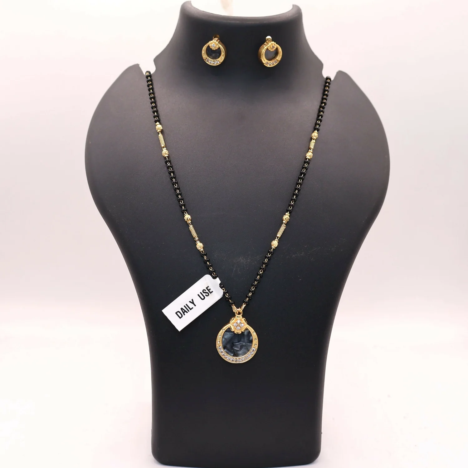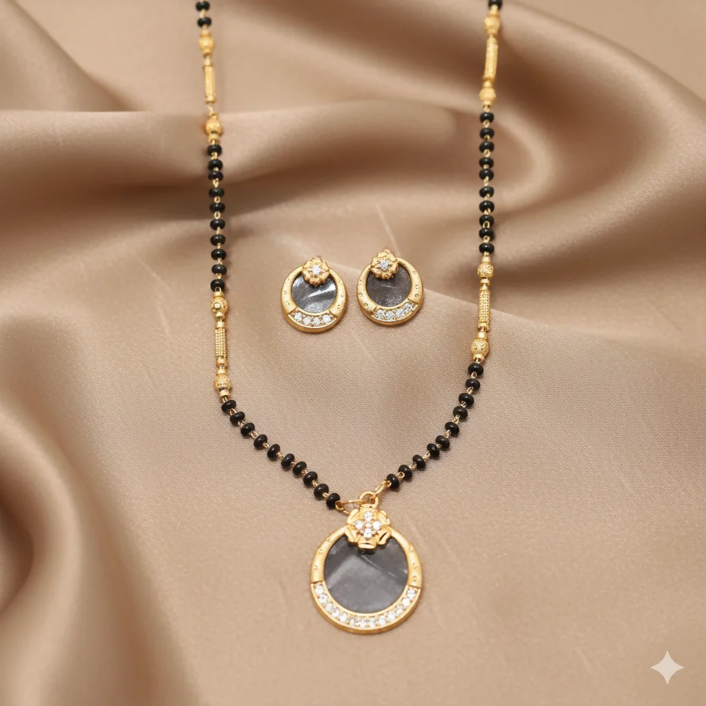 Be the first to review Gold Plated AD Circular Stud Earrings and mangalsutra with Grey Stone for women!