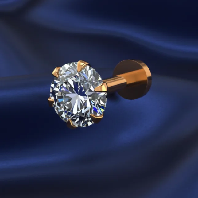 Elevate your everyday look with this timeless Solitaire Diamond Labret Stud. Designed for both elegance and comfort, this piece features a brilliant-cut stone held securely in a classic four-prong setting. The high-polish gold finish provides a warm, luxurious glow that complements any skin tone.