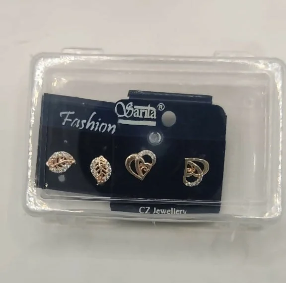 Elevate your look with this stunning combo pack featuring two distinct and beautiful designs. Crafted with a brilliant gold-plated finish and shimmering Cubic Zirconia (CZ) stones, these versatile stud earrings are perfect for daily wear, special occasions, or as a thoughtful gift.