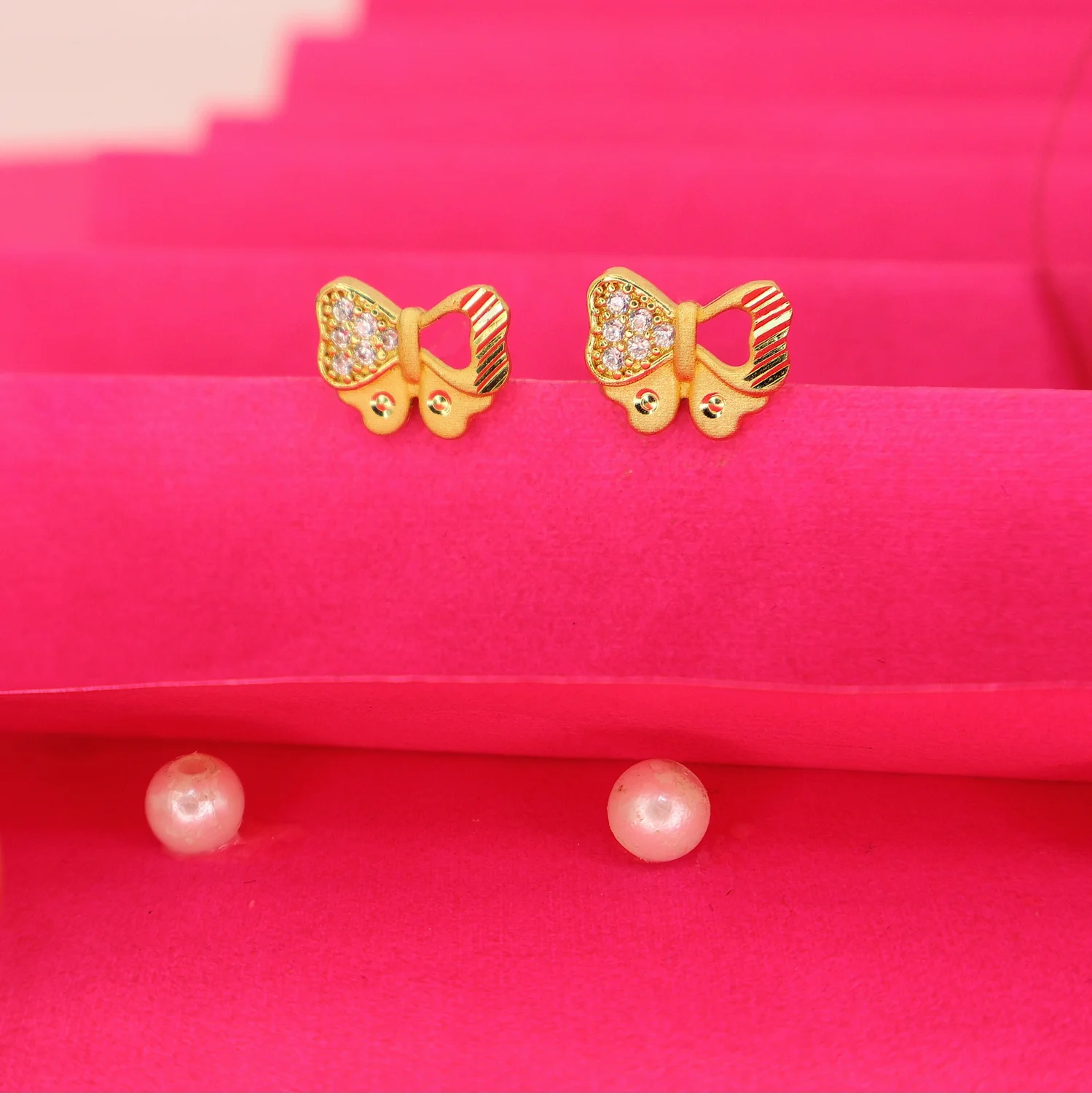 Be the first to review Gold-Plated Butterfly Bow Stud Earrings with AD for women and girls!