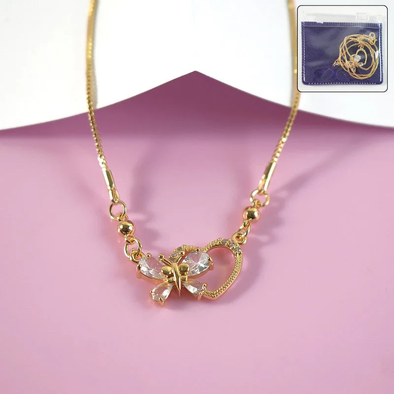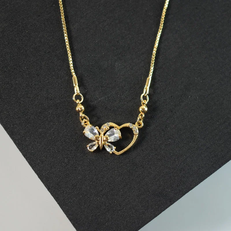 Be the first to review Gold-Plated Crystal Butterfly Heart Pendant Necklace for Women!
