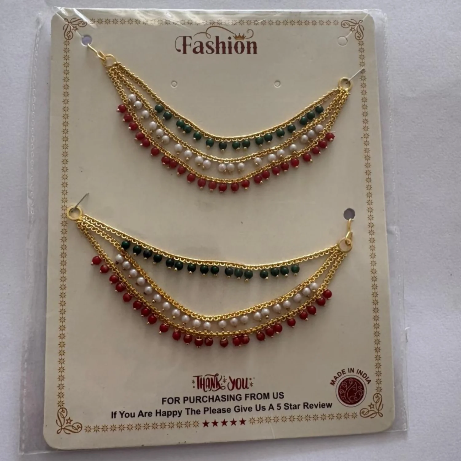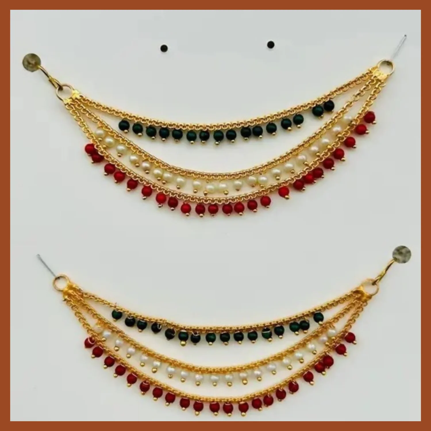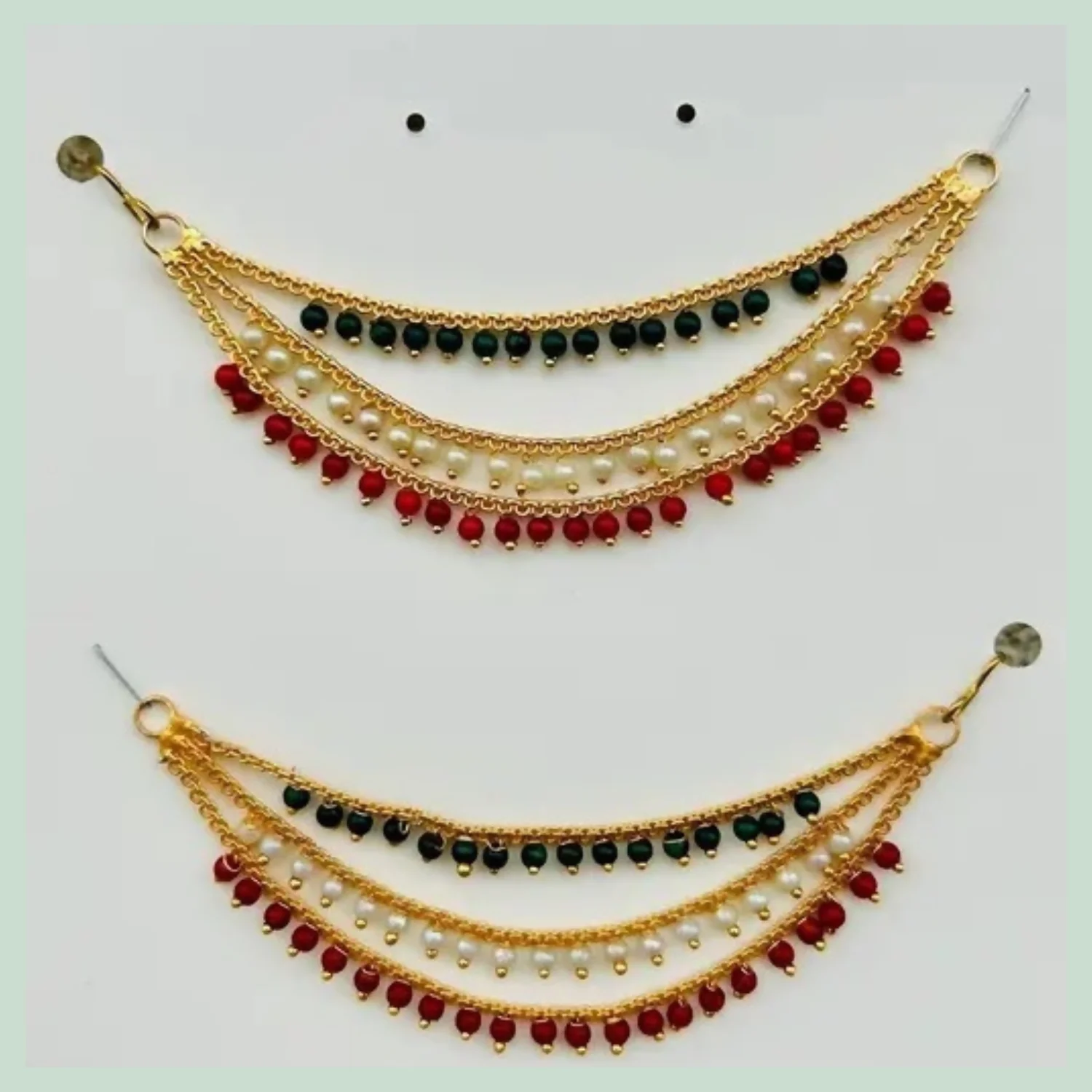 Be the first to review Gold-Plated Ear Chain Kanser with Red Green Beads and Pearls for Women’s Wedding Jewelry!