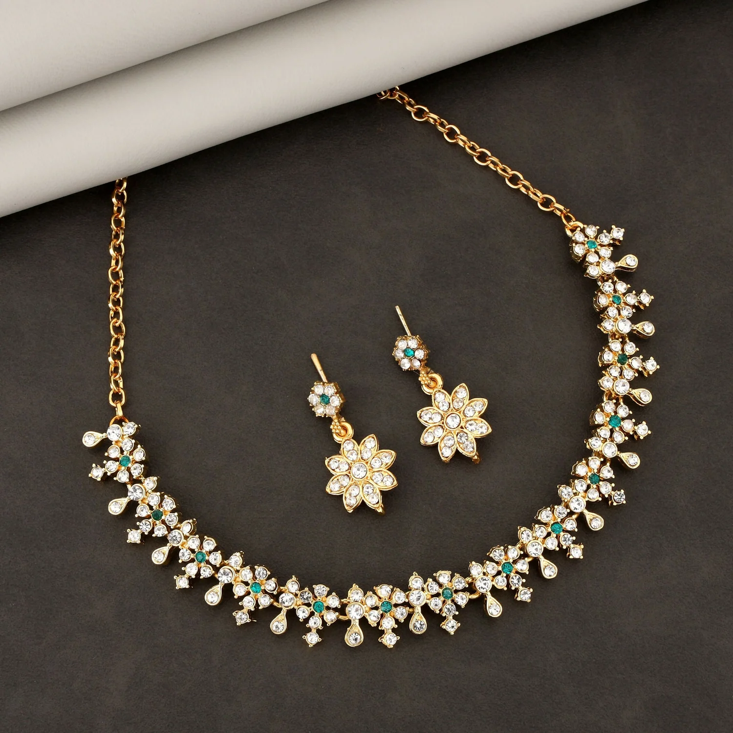 Be the first to review Gold-Plated Emerald Green & Diamond-Look Floral Choker Necklace Set!