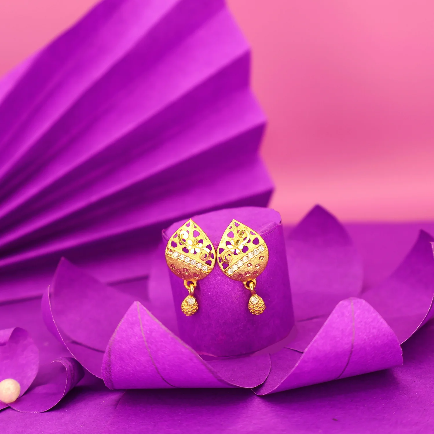 Intricate Filigree Design: The teardrop-shaped studs feature delicate, laser-cut filigree work, showcasing beautiful floral and scroll patterns reminiscent of classic Indian jewelry.