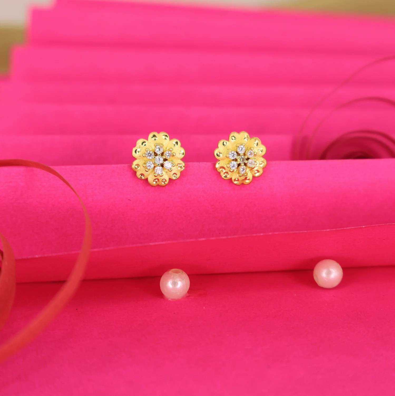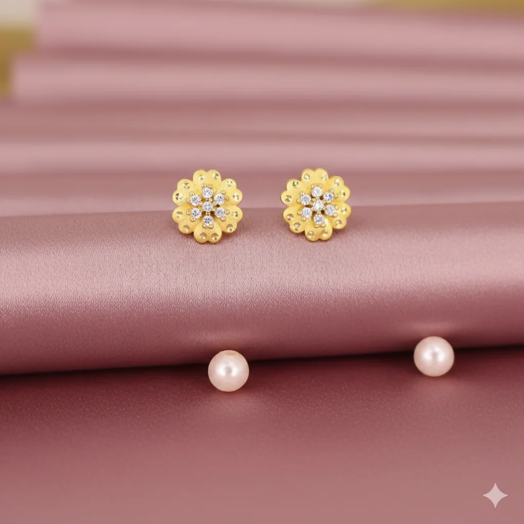 SEO Keywords: Gold Studs, Floral Earrings, CZ Studs, 22K Plated Jewellery, Small Flower Earrings.