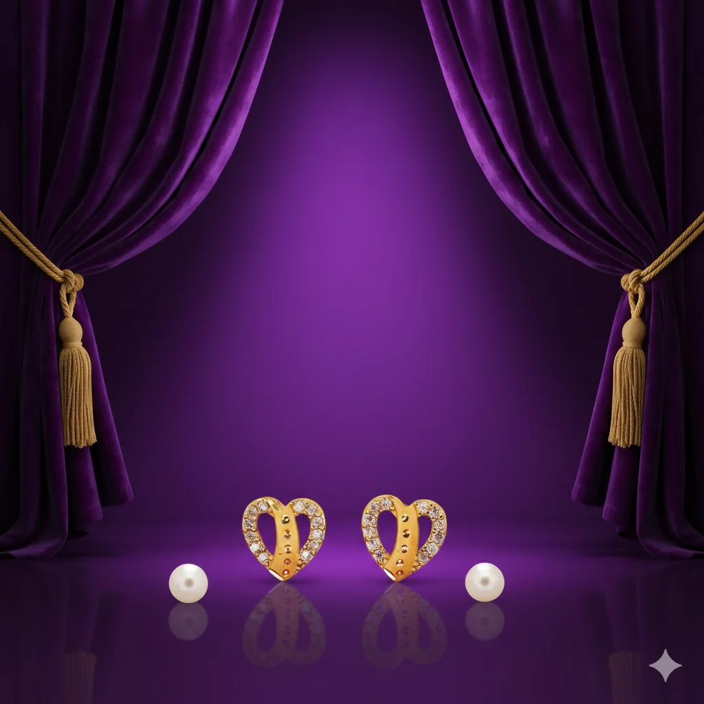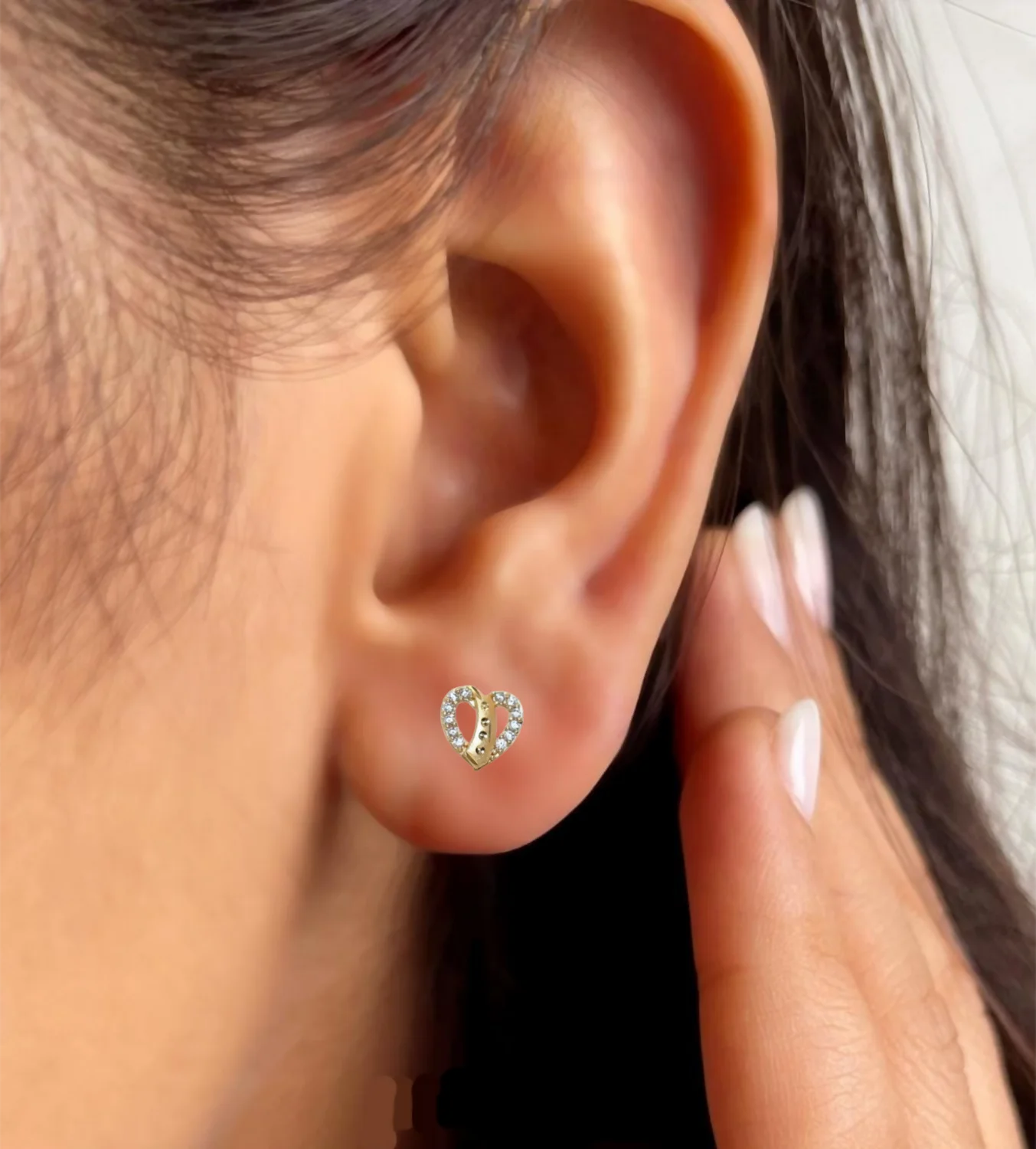 Capture hearts with this exquisite pair of gold-plated stud earrings, featuring a delicate and timeless heart shape. Perfect for adding a touch of romance and sparkle to any look, these earrings are a must-have for daily wear or a special occasion.