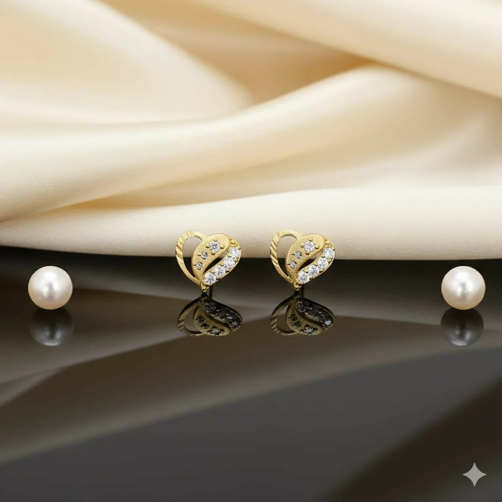 Celebrate love and elegance with these charming Heart-Shaped Stud Earrings. Crafted with a radiant 22K gold plating, the delicate open-heart design features a graceful, swirling curve that is meticulously studded with brilliant Cubic Zirconia (CZ) stones.