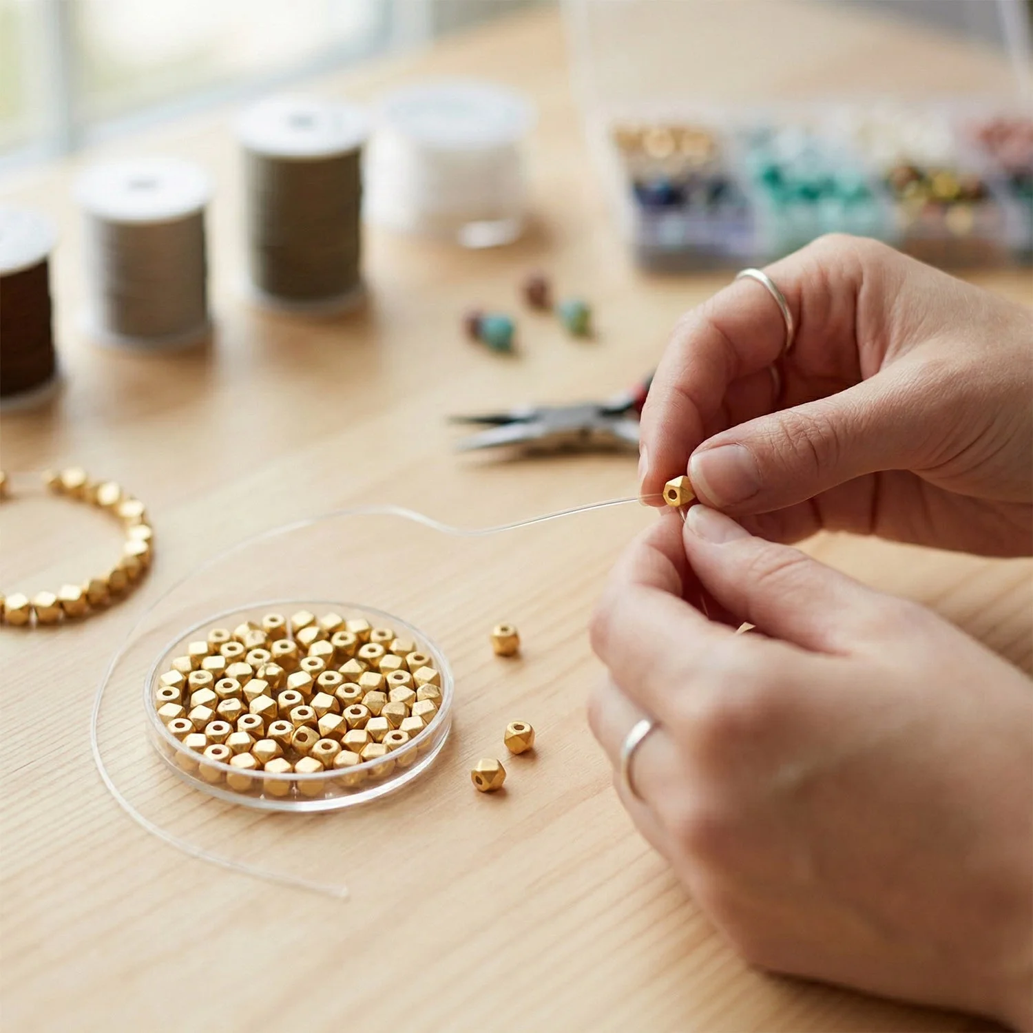 Crafted with precision, each bead has a smooth inner hole for easy threading on wires, cords, or elastic strings. Perfect for both beginners and professional jewelry makers, these beads are ideal for creating trendy necklaces, bracelets, and custom designs.