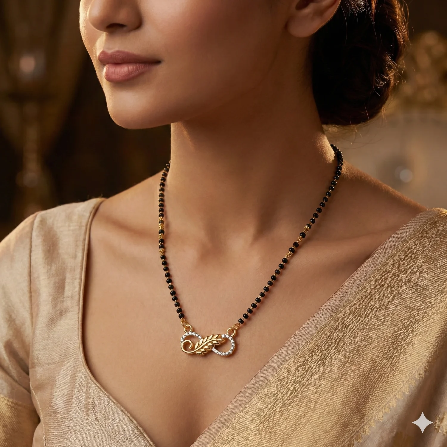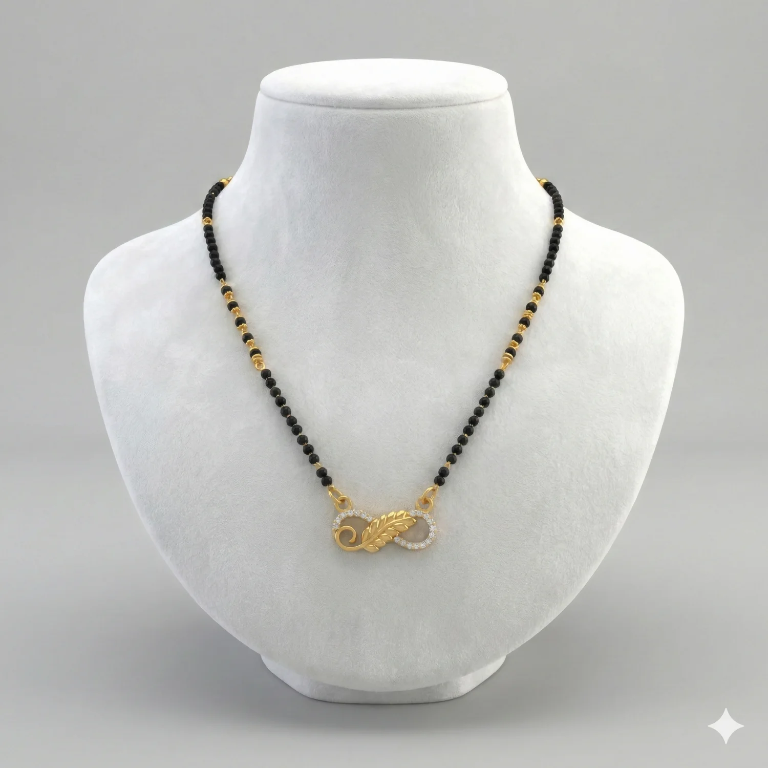Be the first to review Gold Plated Infinity Leaf AD Mangalsutra with Black Beads for women!