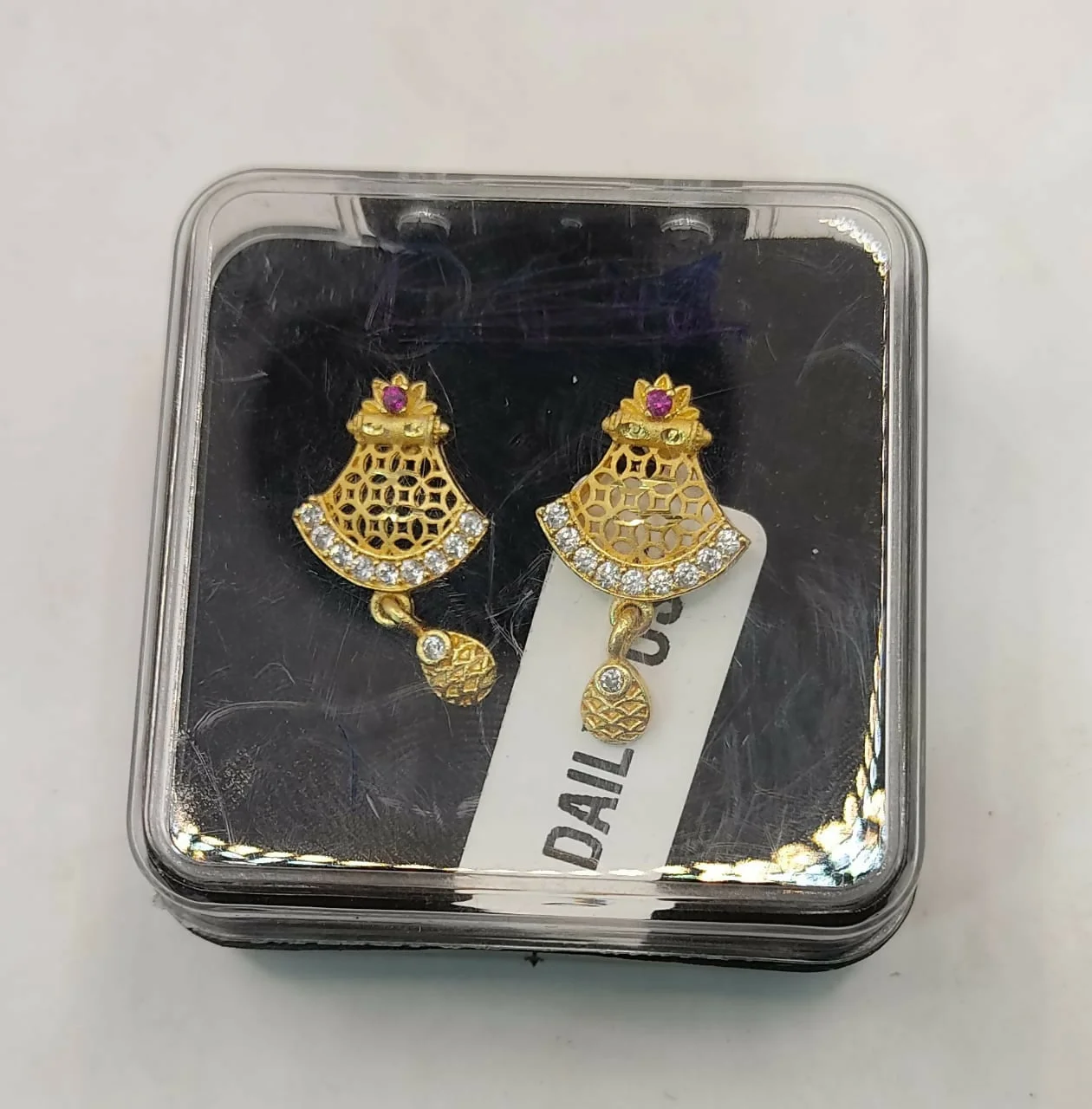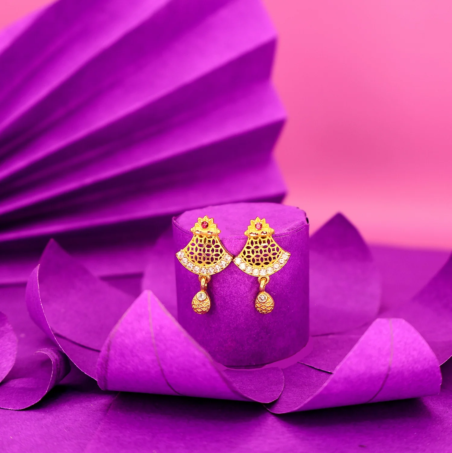 Elevate your everyday glamour with these exquisite gold-plated stud earrings, featuring a beautiful blend of traditional artistry and modern sparkle. Perfect for both ethnic wear and contemporary outfits, these earrings are designed to make a subtle yet stunning statement.