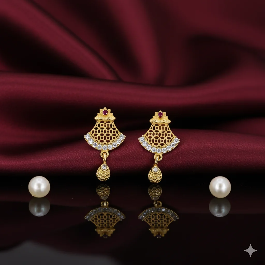 Be the first to review Gold Plated Jali Work & AD Stud Earrings for women and girls!