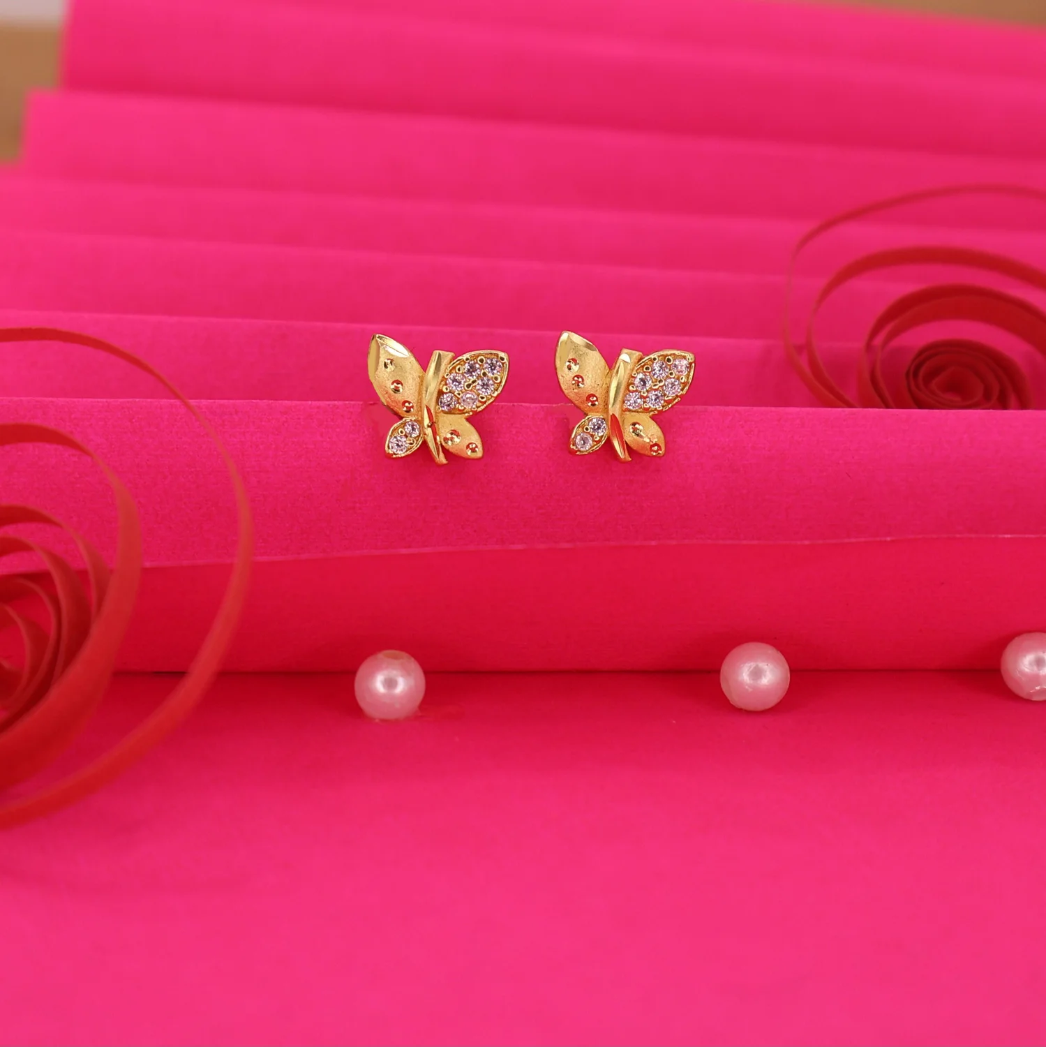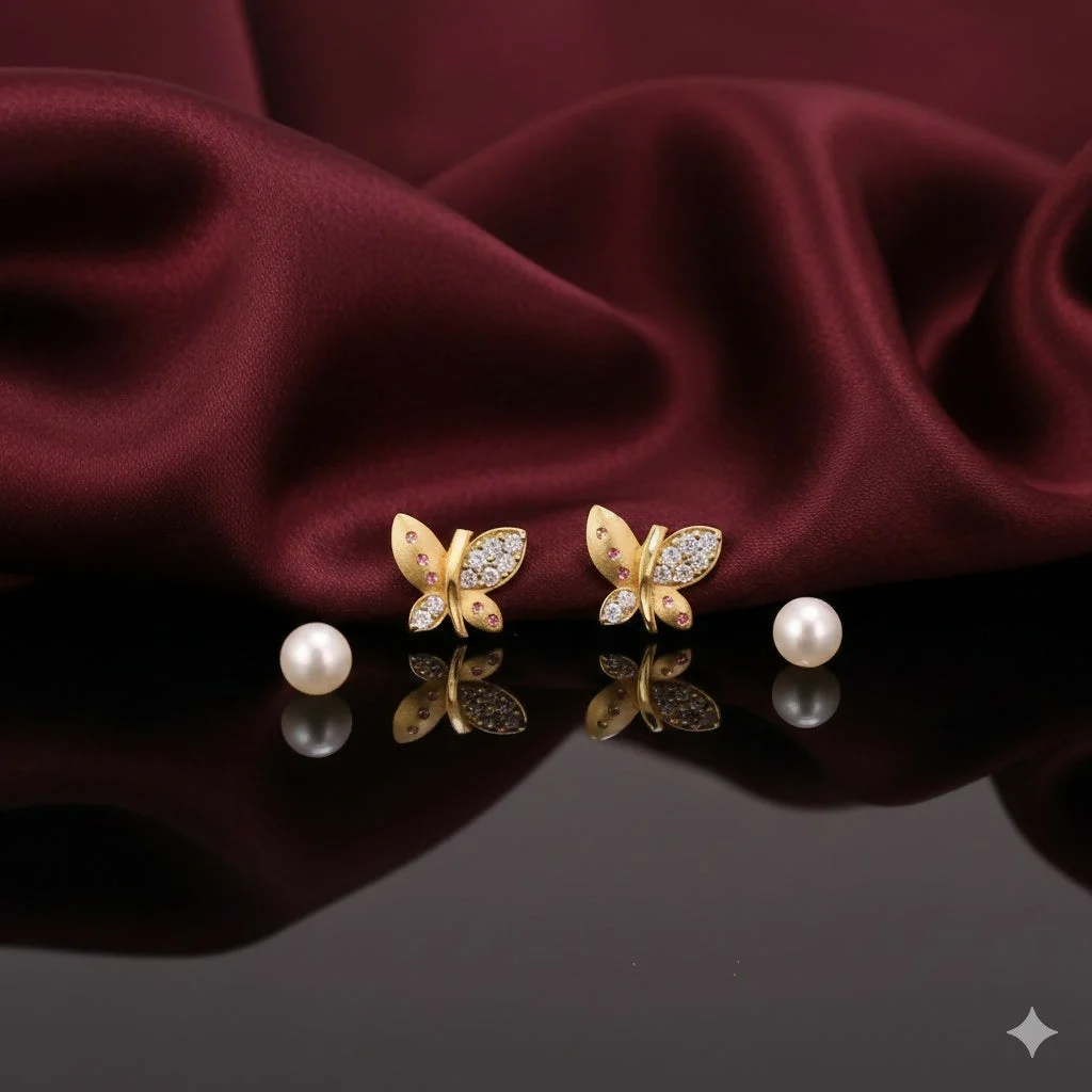 Be the first to review Gold Plated Matte Butterfly earing Studs with AD for women and girls!