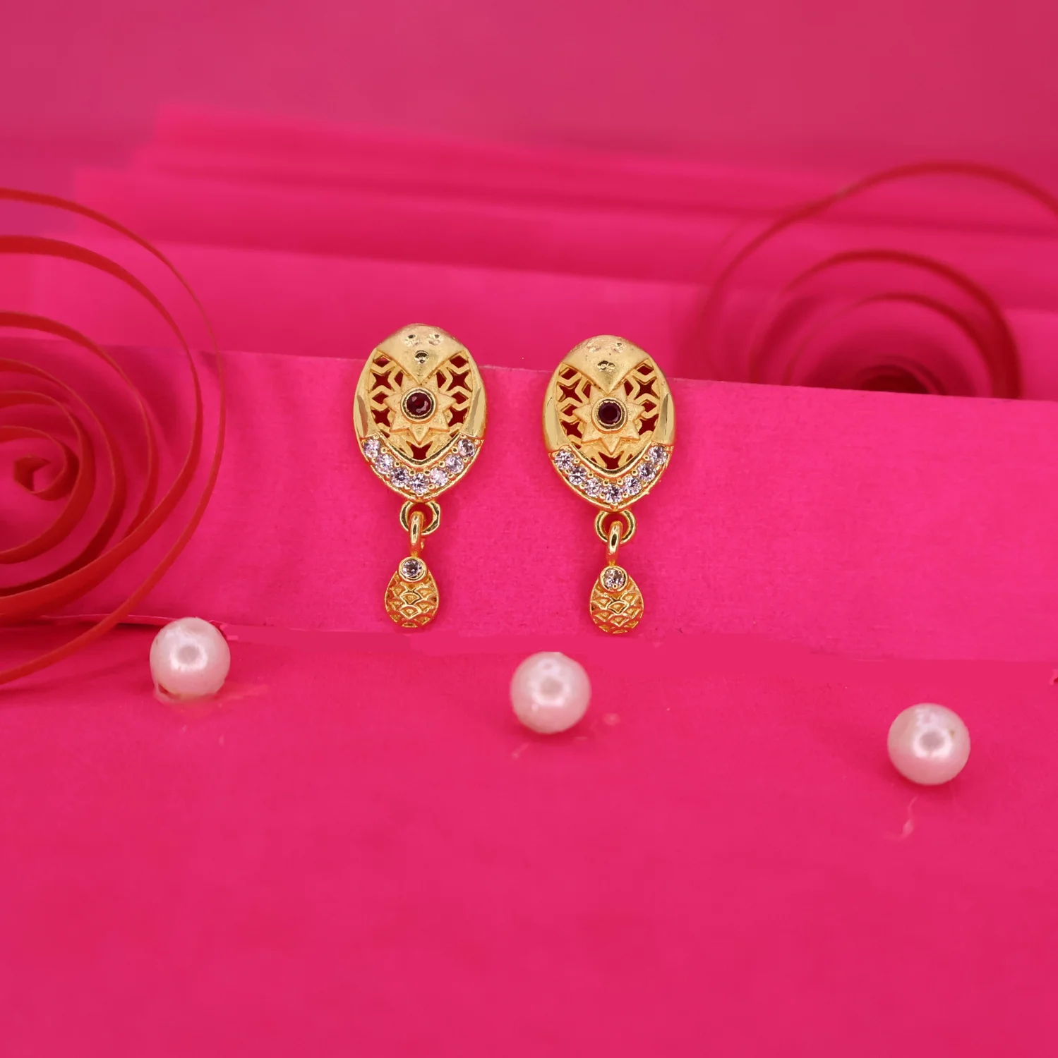 Elevate your traditional or contemporary look with these stunning 22K gold-plated oval stud earrings. Crafted with intricate detail, these earrings are the perfect blend of classic elegance and modern design, making them a must-have addition to your jewelry collection.
