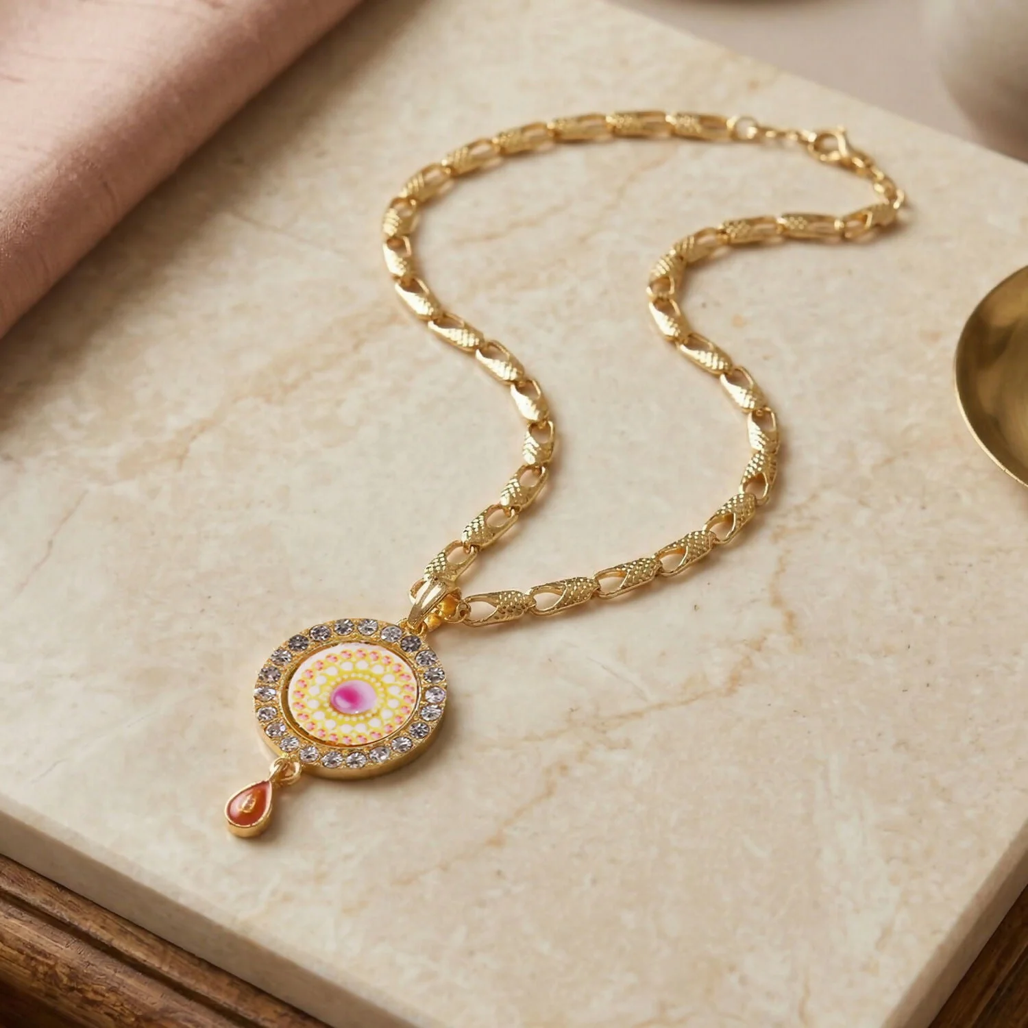 Be the first to review Gold Plated Pendant Necklace with Stone Studded Design!