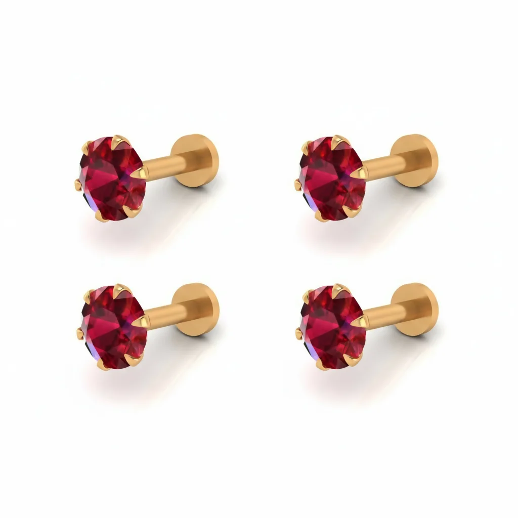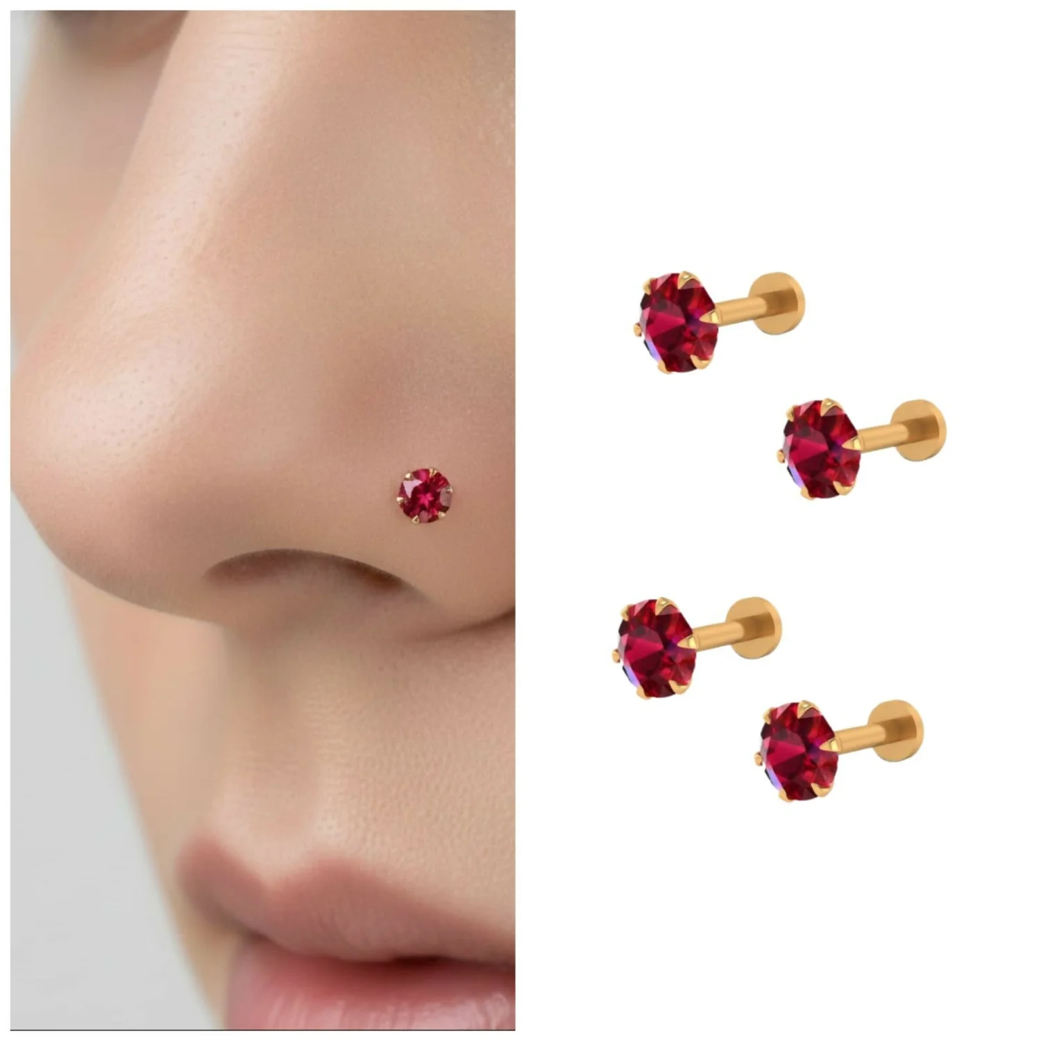 Be the first to review Gold Plated Red Ruby AD Nosepin Stud Flat Back Labret Piercing Combo Pack of 4!