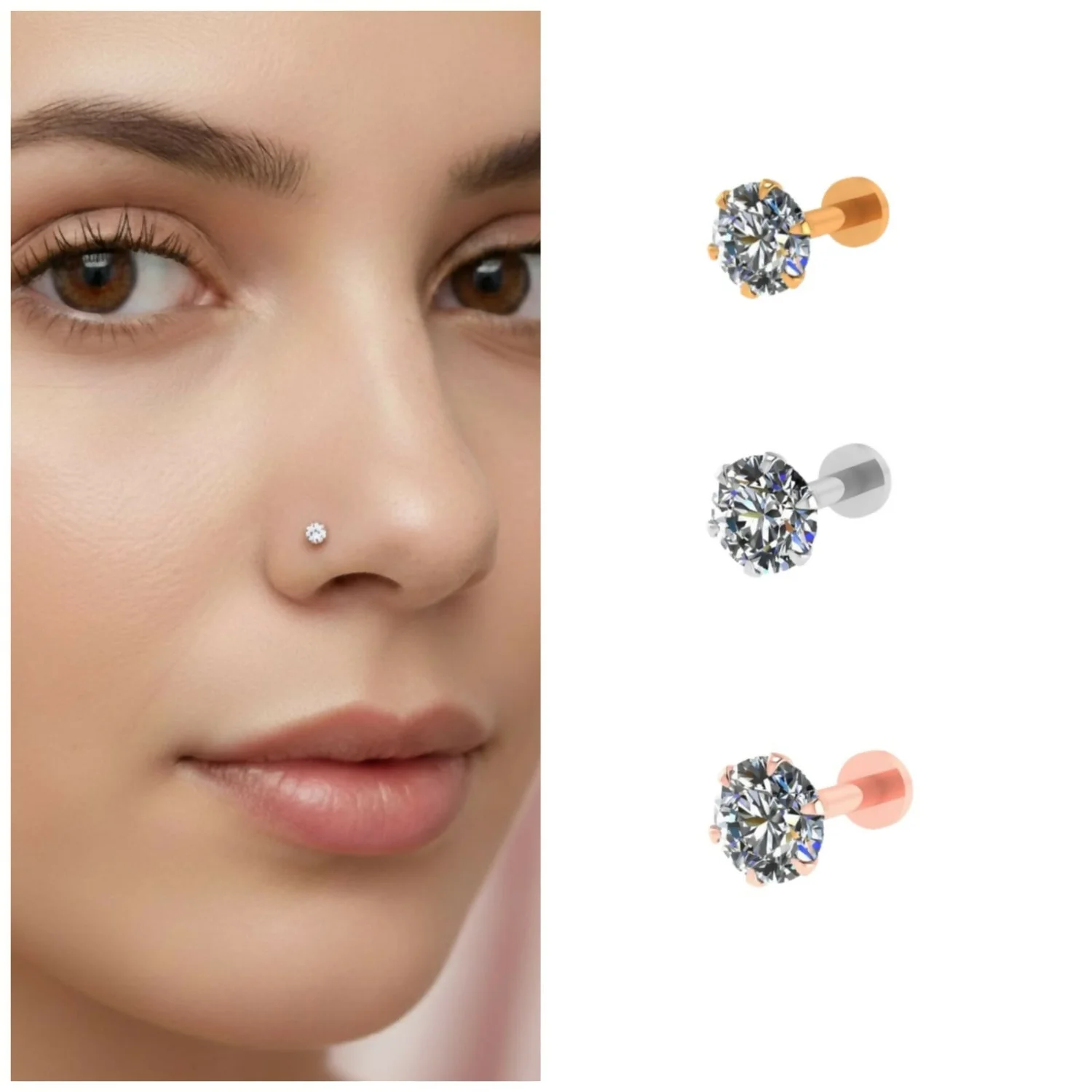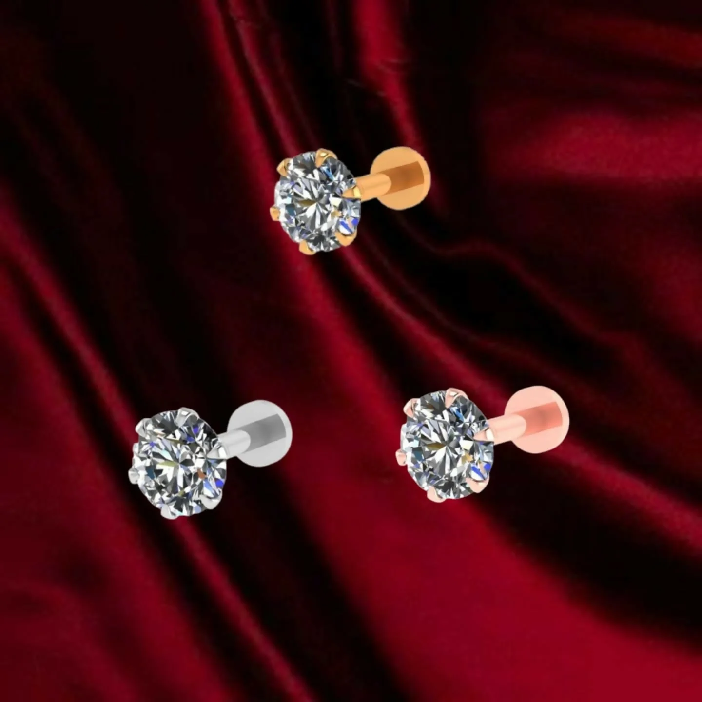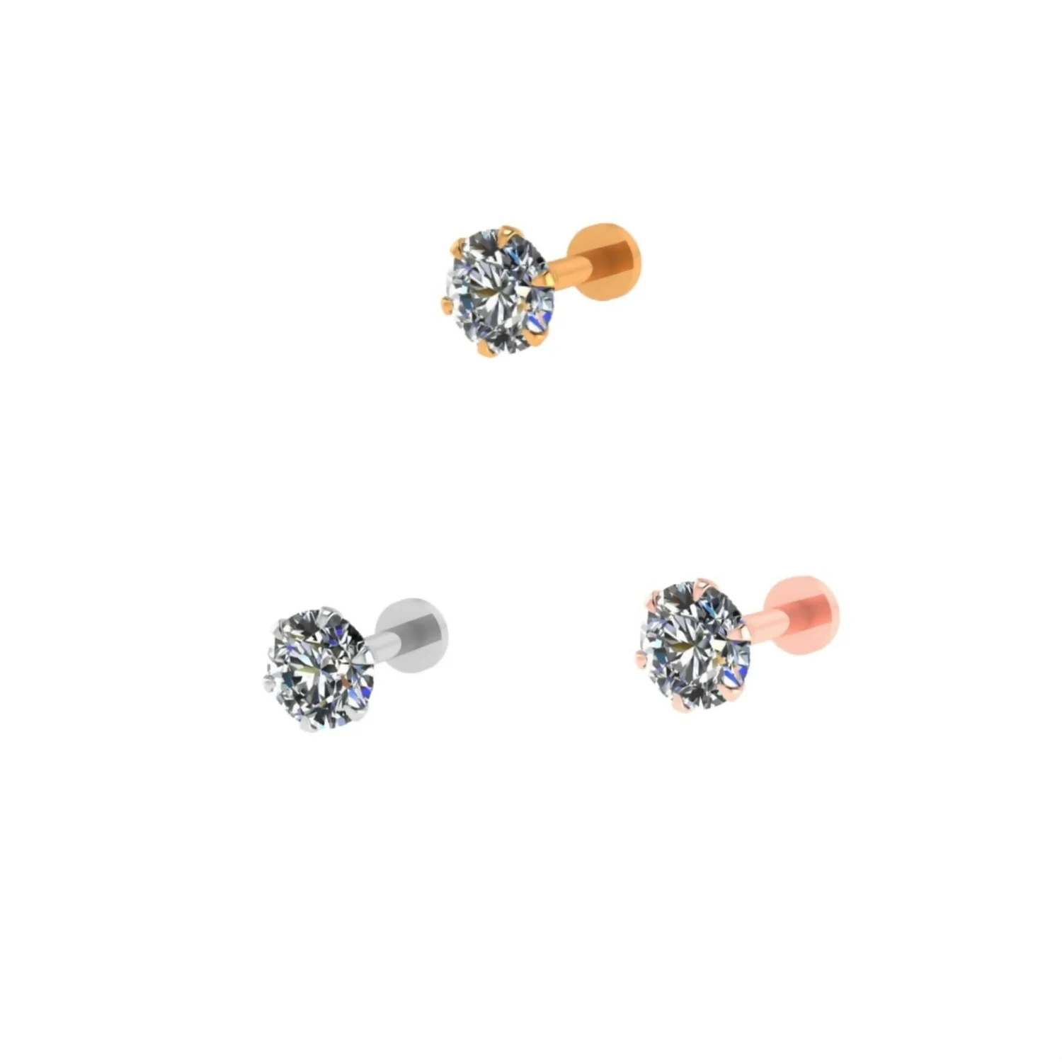 Elevate your style with this elegant and versatile Crystal Labret Stud Set. Designed for both comfort and sparkle, these studs feature a high-quality, brilliant-cut cubic zirconia stone held securely in a classic six-prong setting. The flat-back design makes them perfect for various piercings, ensuring a snag-free experience and all-day comfort.