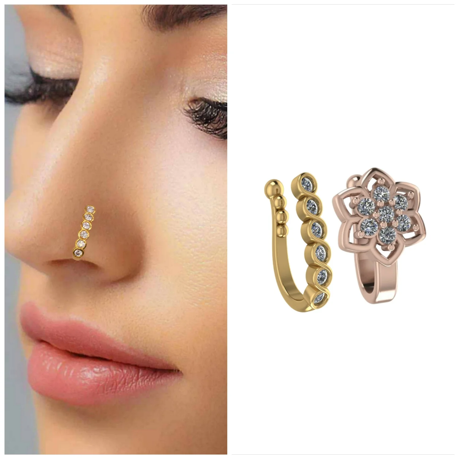 No Piercing Required: All pieces are designed to comfortably and securely clip onto the side of the nostril or the septum, functioning as an ideal fake nose ring or non-pierced nath.