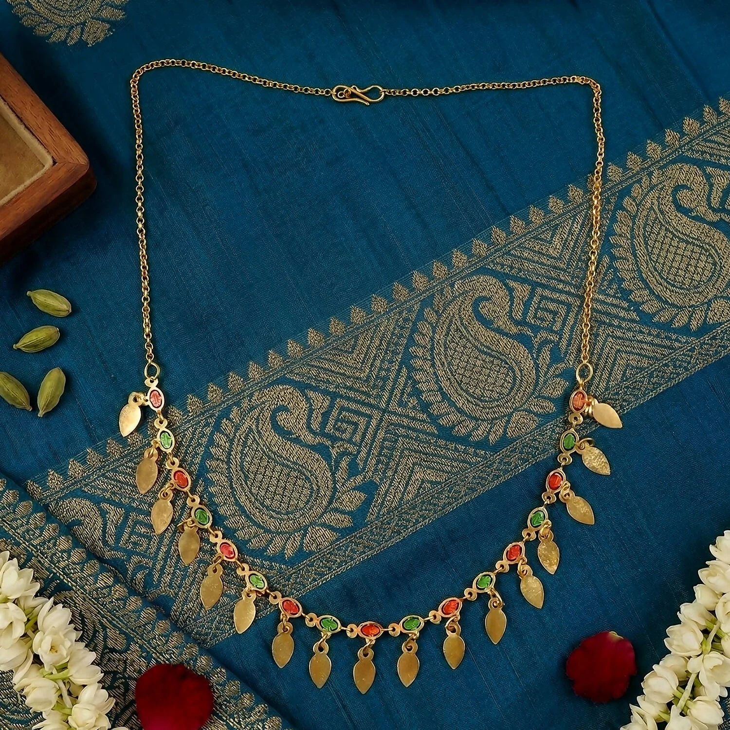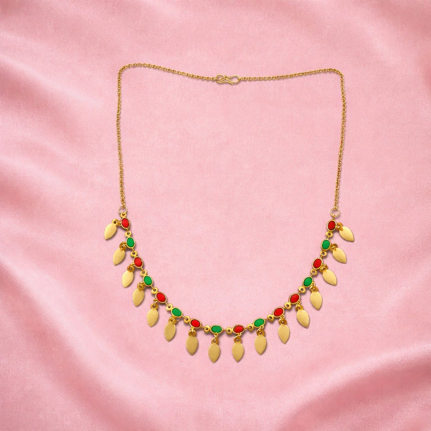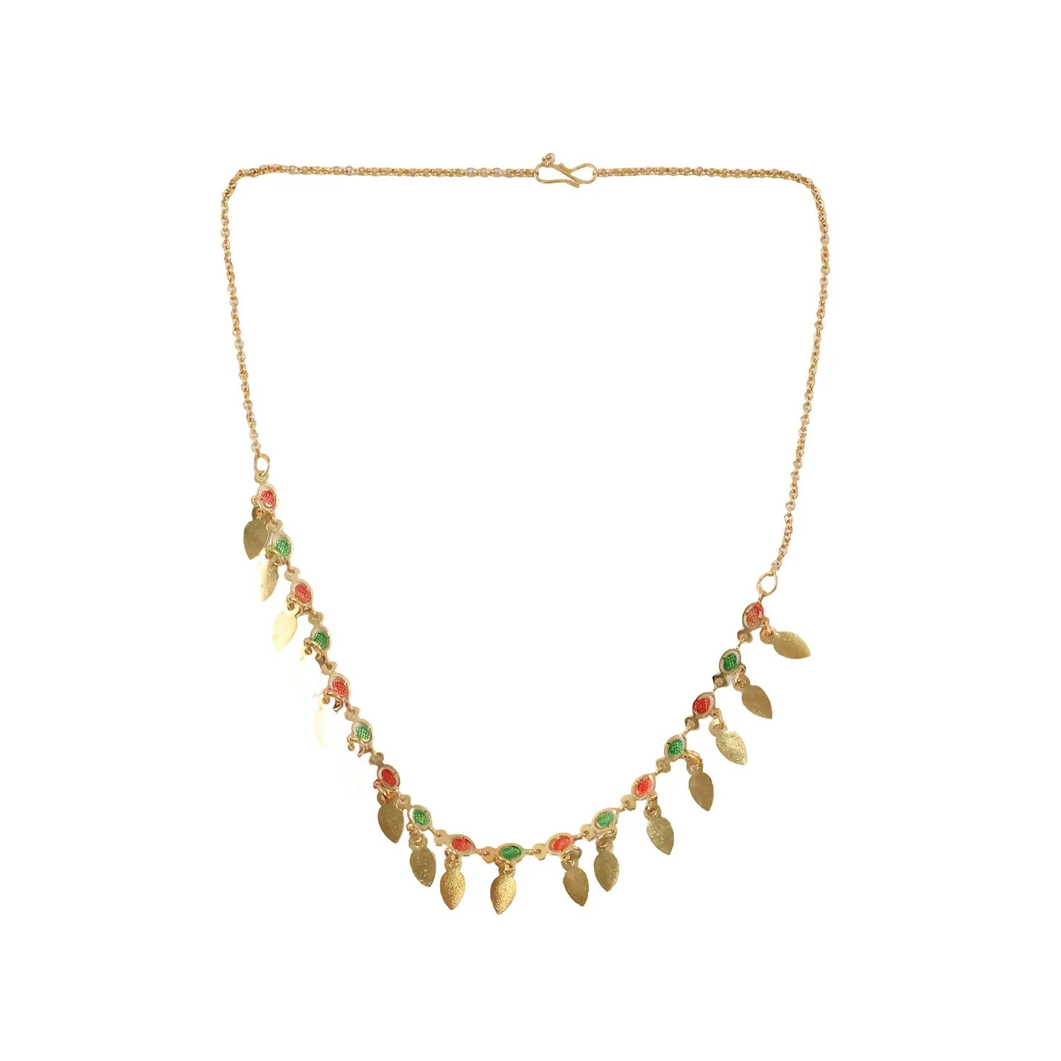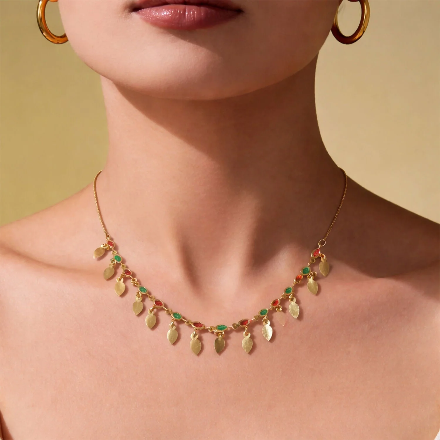 Be the first to review Gold Tone Leaf Charm Necklace with Multicolor Stones!
