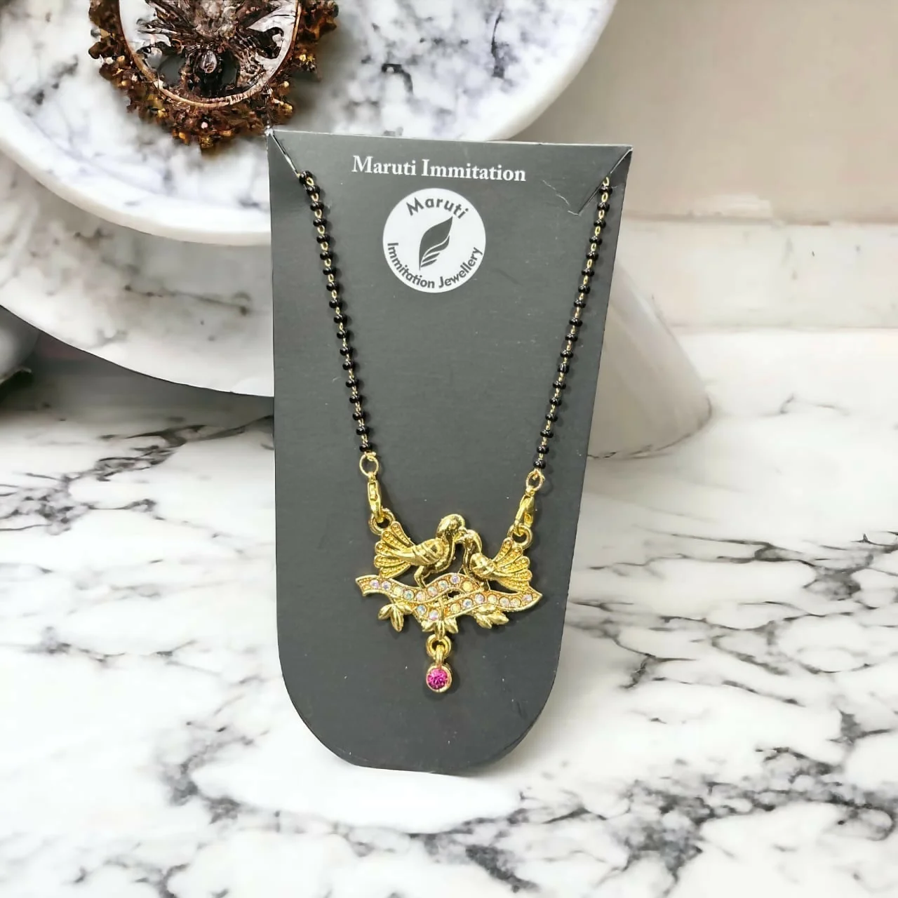 Be the first to review Gold-Toned Bird Design Mangalsutra with Stone-Studded Pendant and Pink Drop!