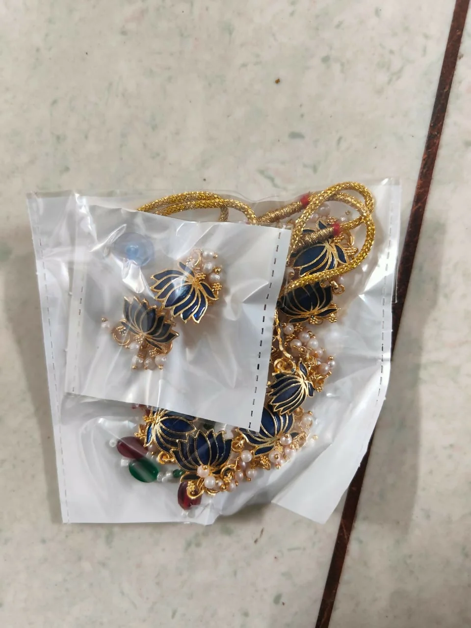 Be the first to review Gold-Toned BLUE Petal & AD Cluster Choker Set!