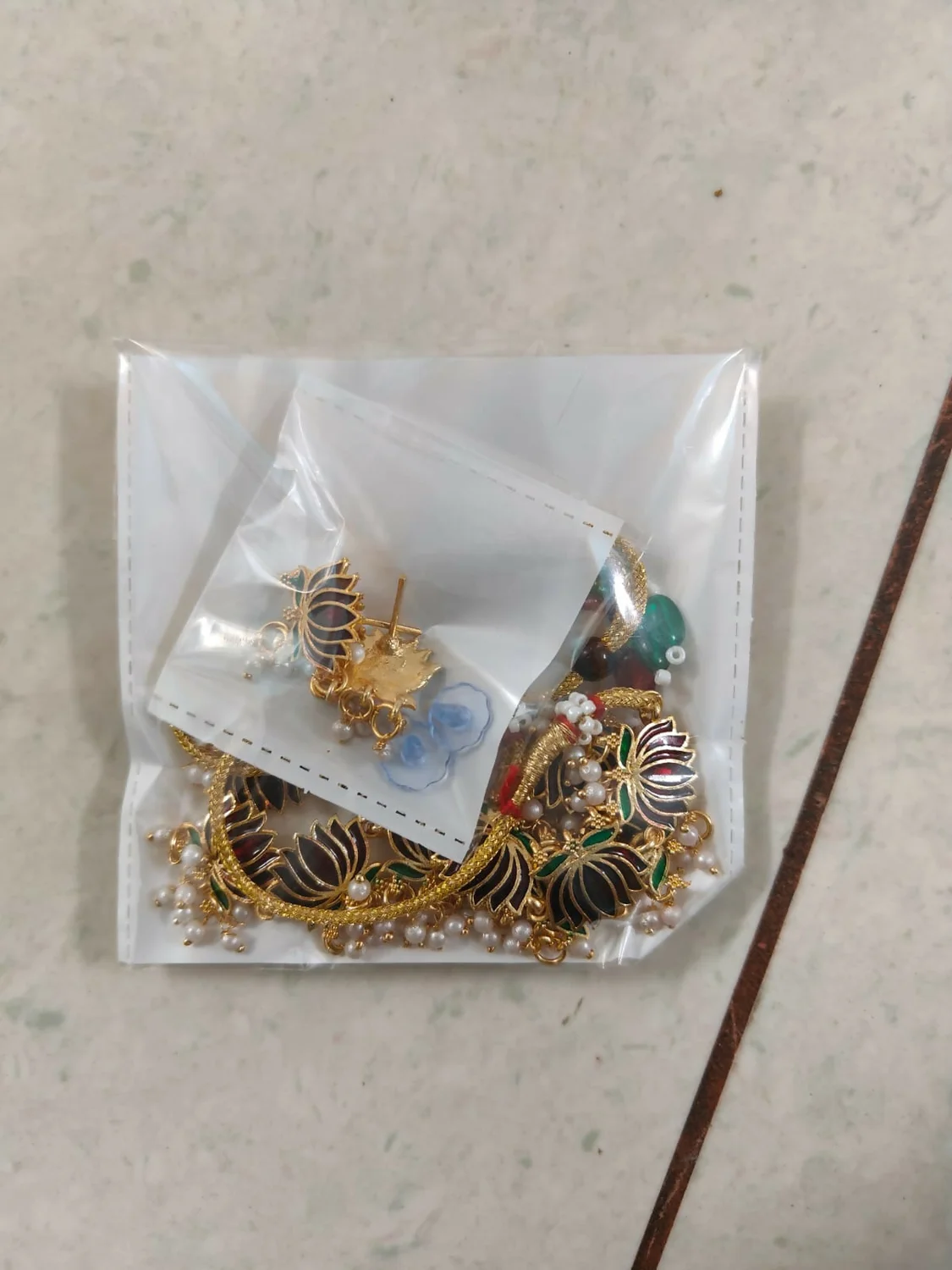 Be the first to review Gold-Toned maroon-Green Enamel Lotus & Pearl Choker Set!