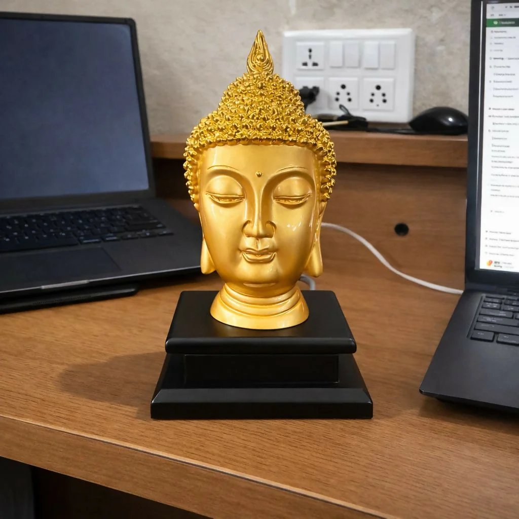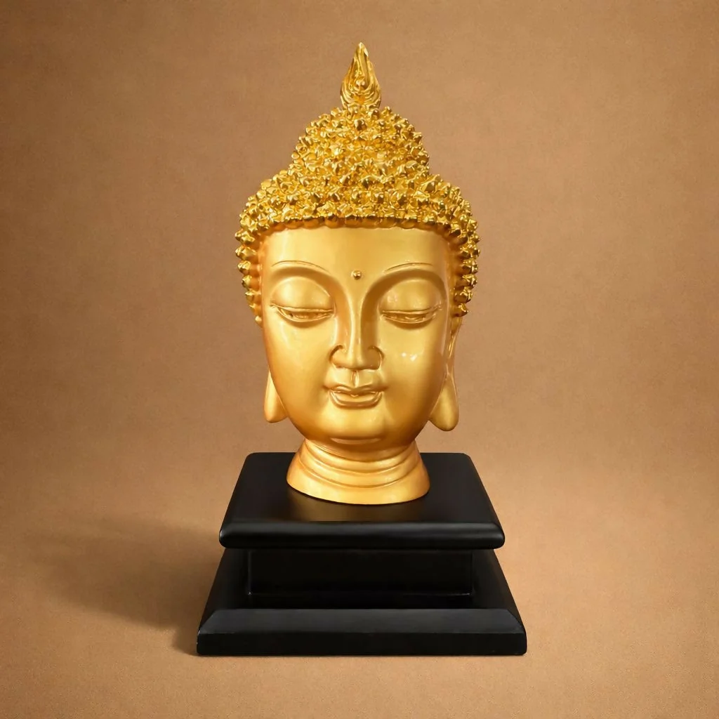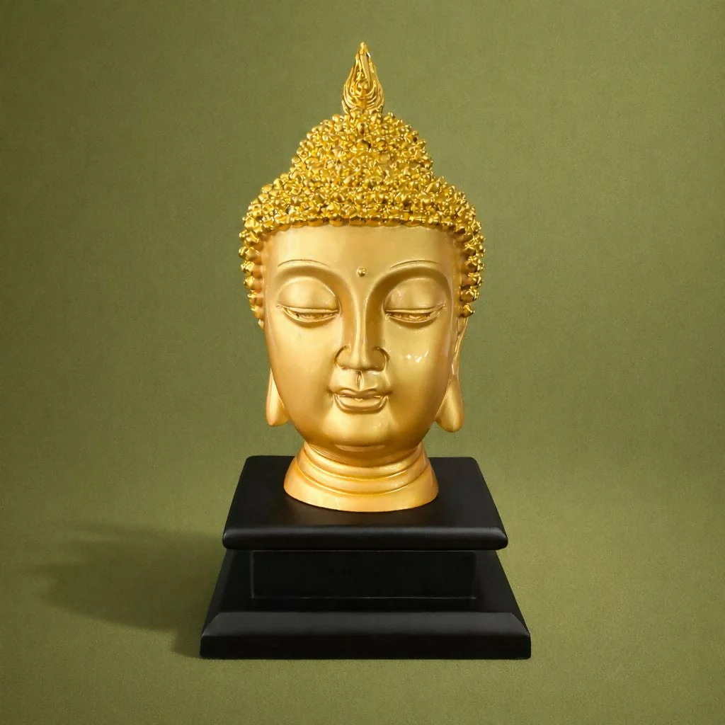 buddha statue, buddha head statue, golden buddha decor, buddha idol for home decor, meditation buddha statue, buddha head sculpture, spiritual decor statue, buddha figurine decor, yoga room decor statue, zen decor buddha, buddha face statue, decorative buddha idol, tabletop buddha statue, mindfulness decor statue, buddha home decoration