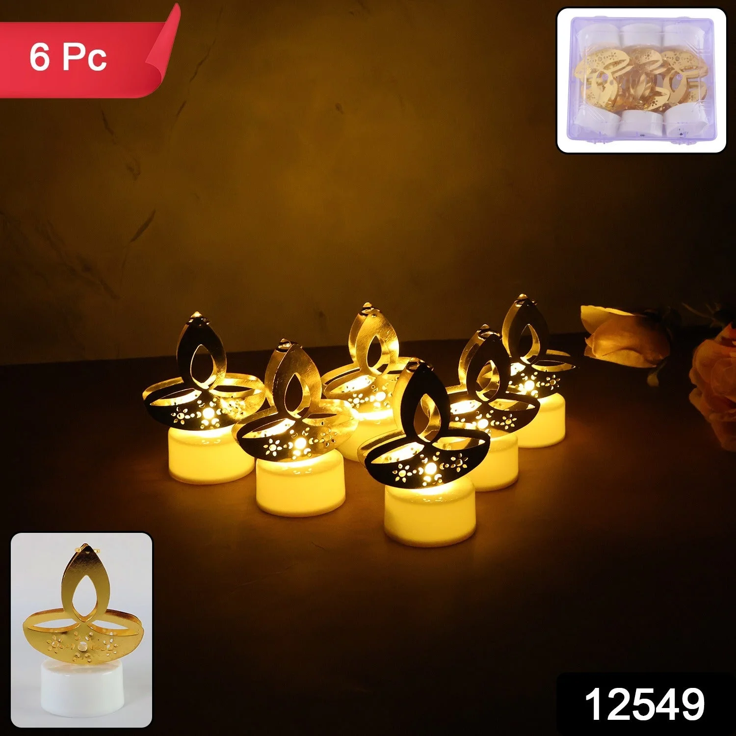 Set of 6 Golden Diya Shaped LED Tealight Candles – Flameless Decorative Festival Lights for Home, Puja, Diwali, and Party Decoration