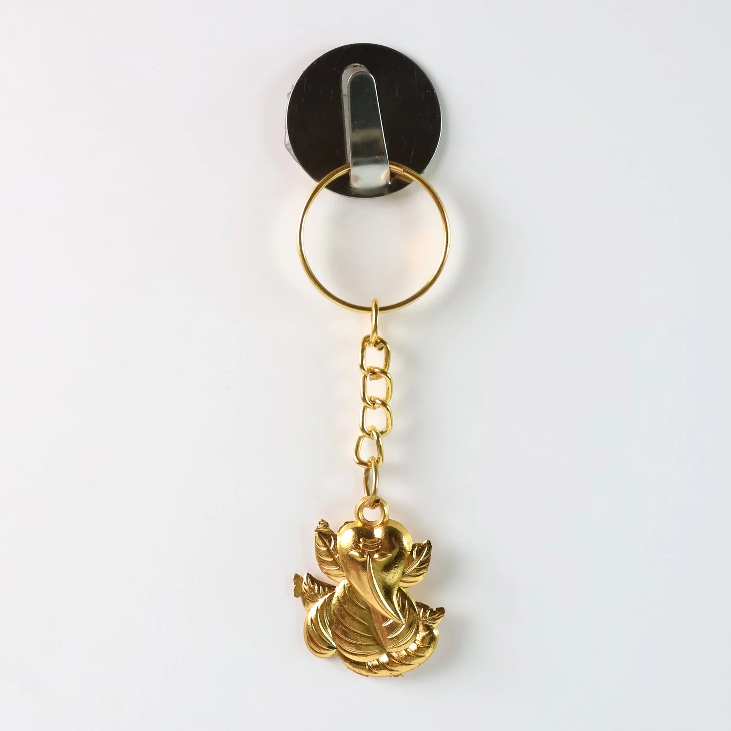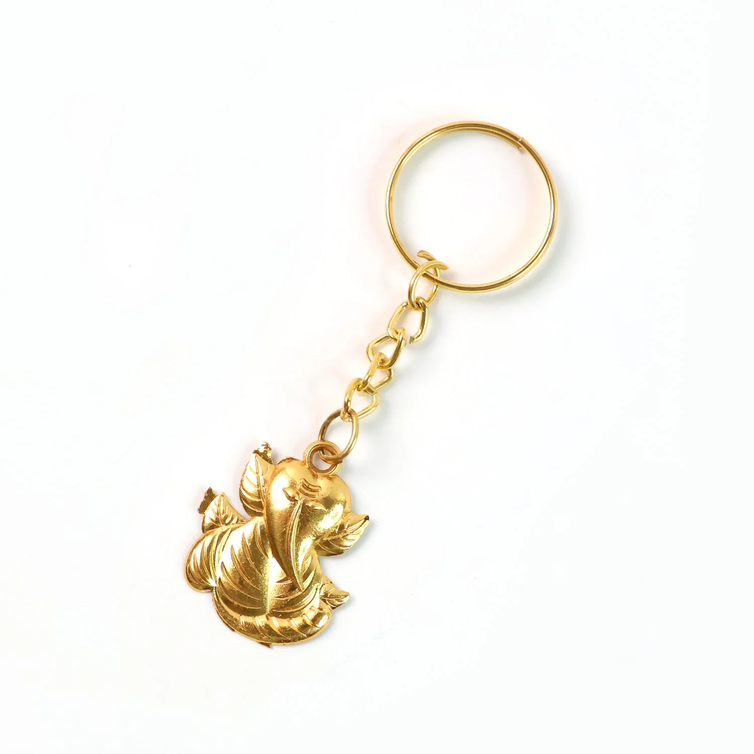 Golden Ganesh Leaf Design Keychain (1 Pc)