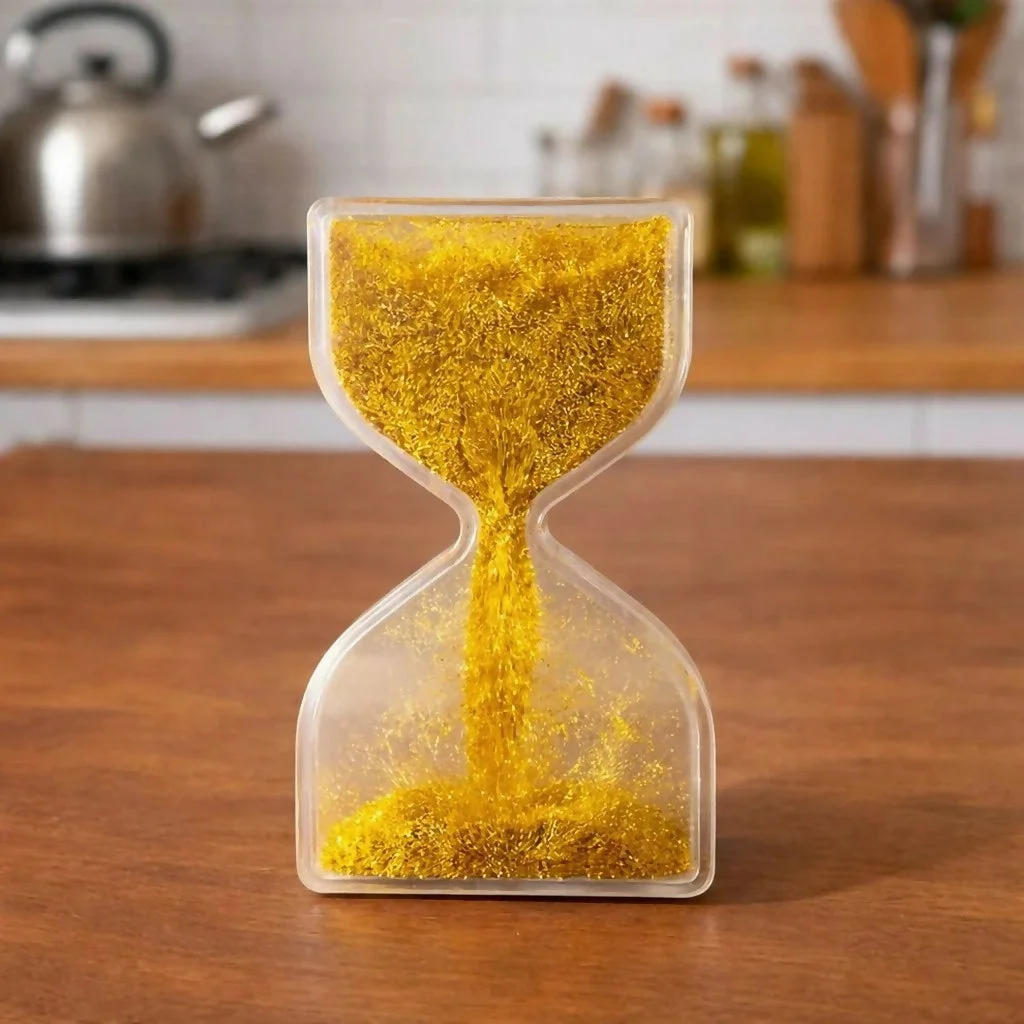 Bring a touch of elegance and relaxation to your space with this golden glitter liquid hourglass timer. Featuring a smooth flowing shimmer effect, it creates a mesmerizing visual experience that helps reduce stress and improve focus. Perfect for desks, study tables, or decorative setups, this timer combines functionality with stylish appeal. Suitable for both kids and adults, it also makes a unique and thoughtful gift.